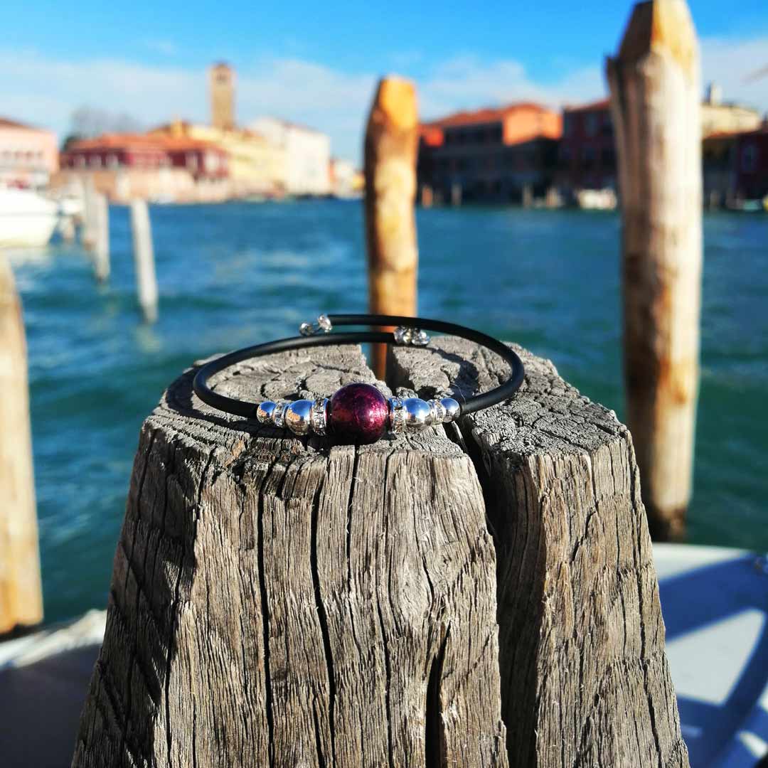 Bracciale Perla Viola - con Argento - Vetro di Murano Originale OMG