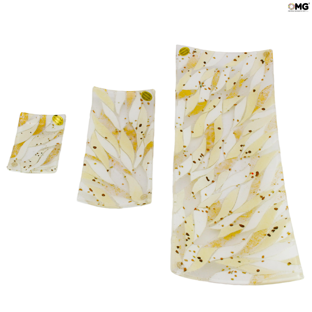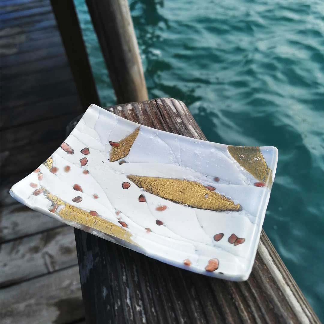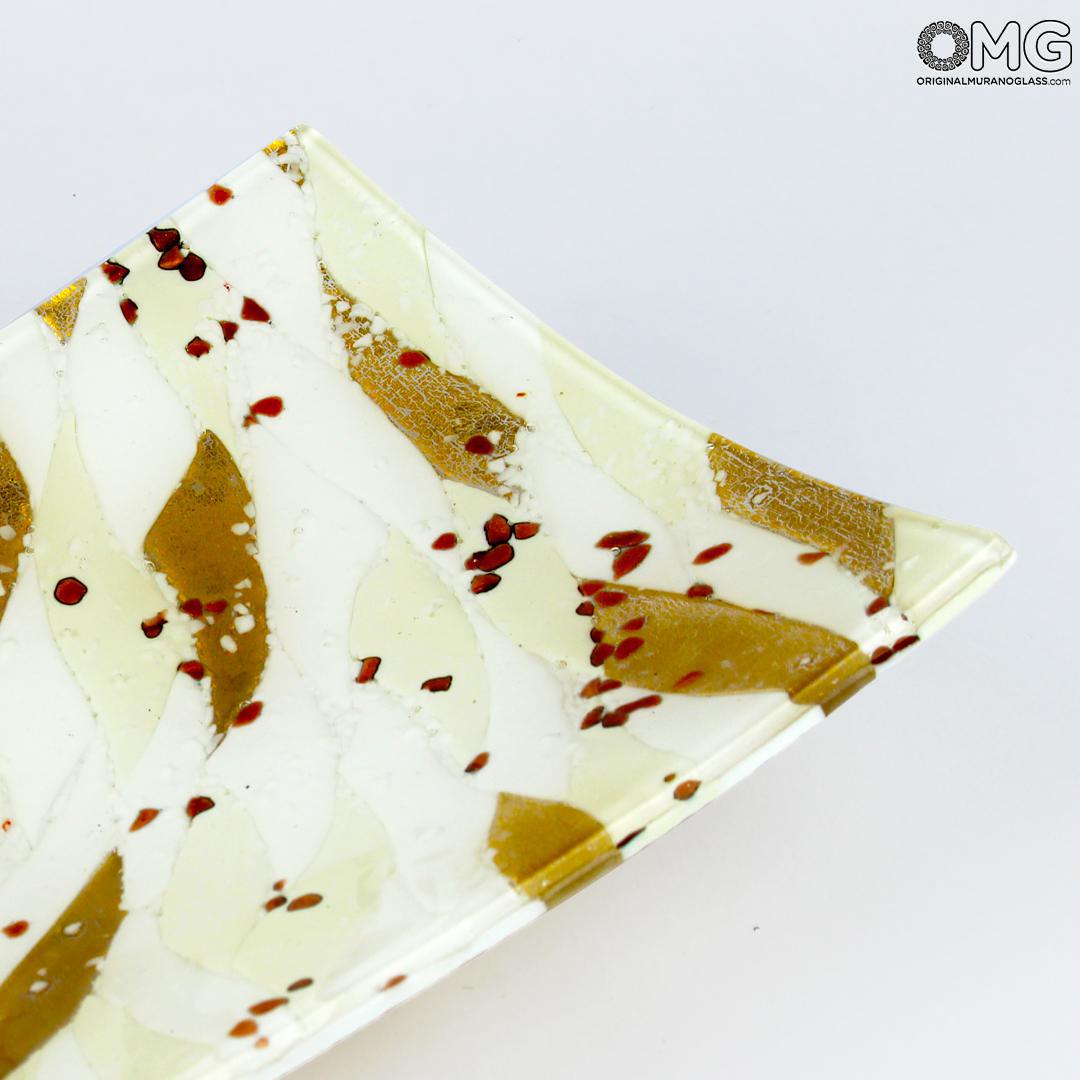 Piatto realizzato con la tecnica della vetrofusione in vetro di Murano ed impreziosito da una vera foglia d'oro 24 carati.