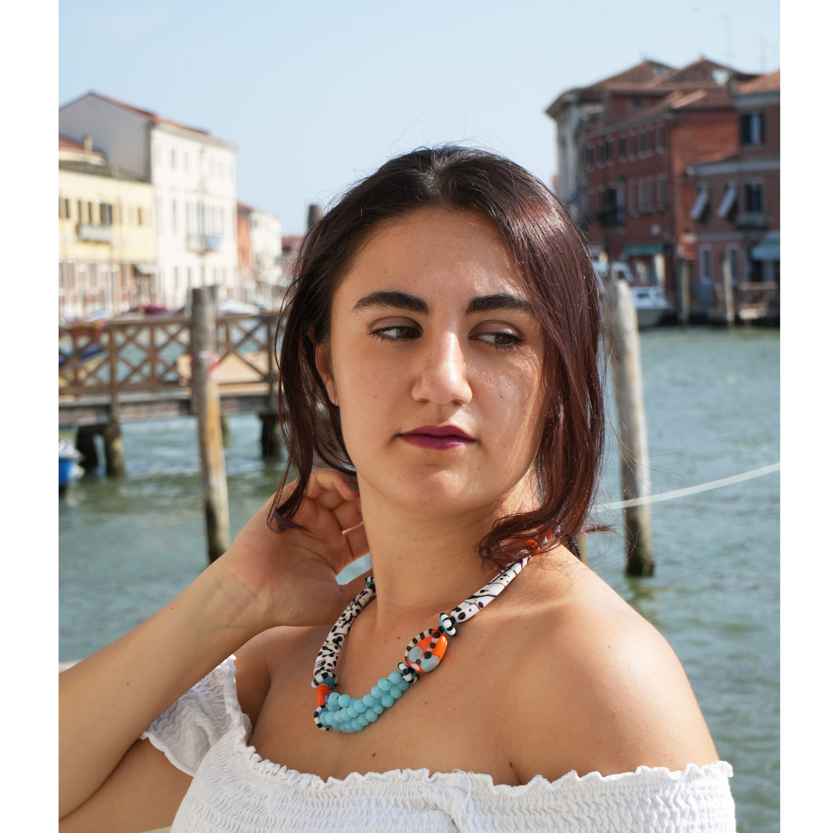 Collana di perle veneziane fatta a mano in vetro di Murano originale. Le perle sono realizzate una a una con lavorazione al lume dai nostri maestri vetrai. Esclusiva ed originale idea regalo per donna.