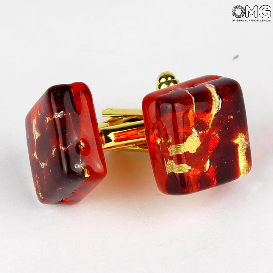 Eleganti gemelli realizzati con la tecnica della fusione del vetro con oro zecchino. Lavorati con attenzione ai dettagli e realizzato con Vetro di Murano.