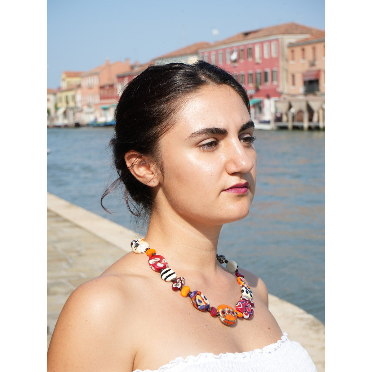 Collana di perle veneziane fatta a mano in vetro di Murano originale. Le perle sono realizzate una a una con lavorazione al lume dai nostri maestri vetrai. Esclusiva ed originale idea regalo per donna.
