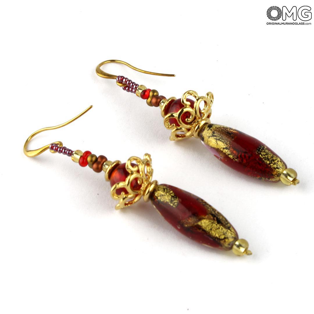 Orecchini in vetro di Murano sommerso realizzati con la tecnica della modellazione a lume.
