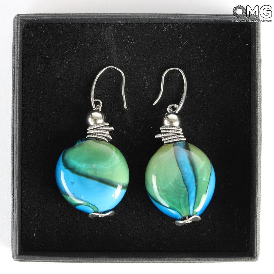 Orecchini in vetro di murano realizzati con la tecnica della lavorazione a lume.