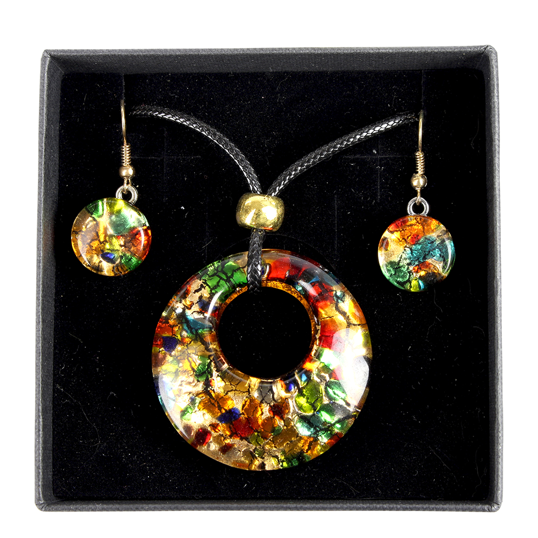 Parure "Cortina Round" in vetro di Murano, realizzata a mano in vetro fusione e arricchita con foglia d'oro 24kt.