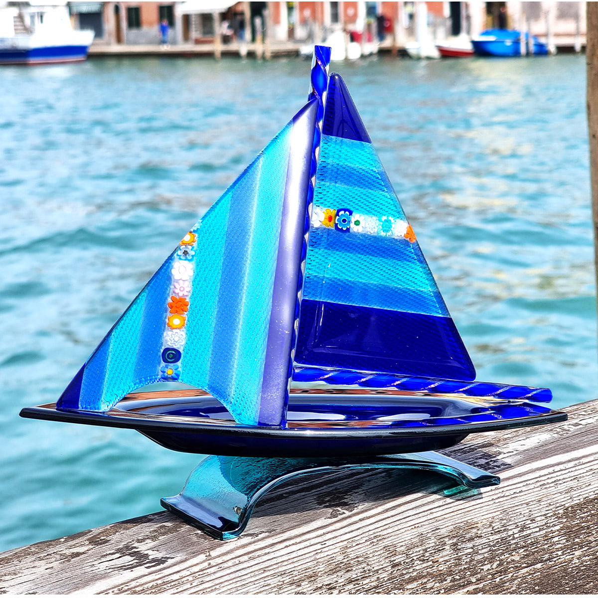 Barco de vela - escultura pisapapeles - Vidrio de Murano