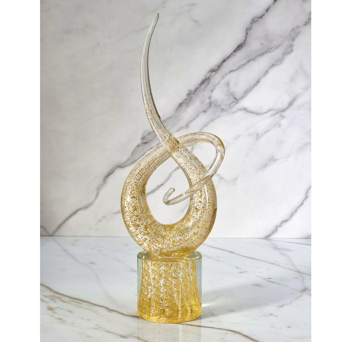 Scultura Nodo di Amore in vetro di Murano realizzata a mano in vetro trasparente e arricchita da oro puro 24 kt. Il nesso tra i nodi con l'amore, l'amicizia e l'affetto risale all'antichità, rendendo questa opera d'arte un regalo significativo e senza tempo.