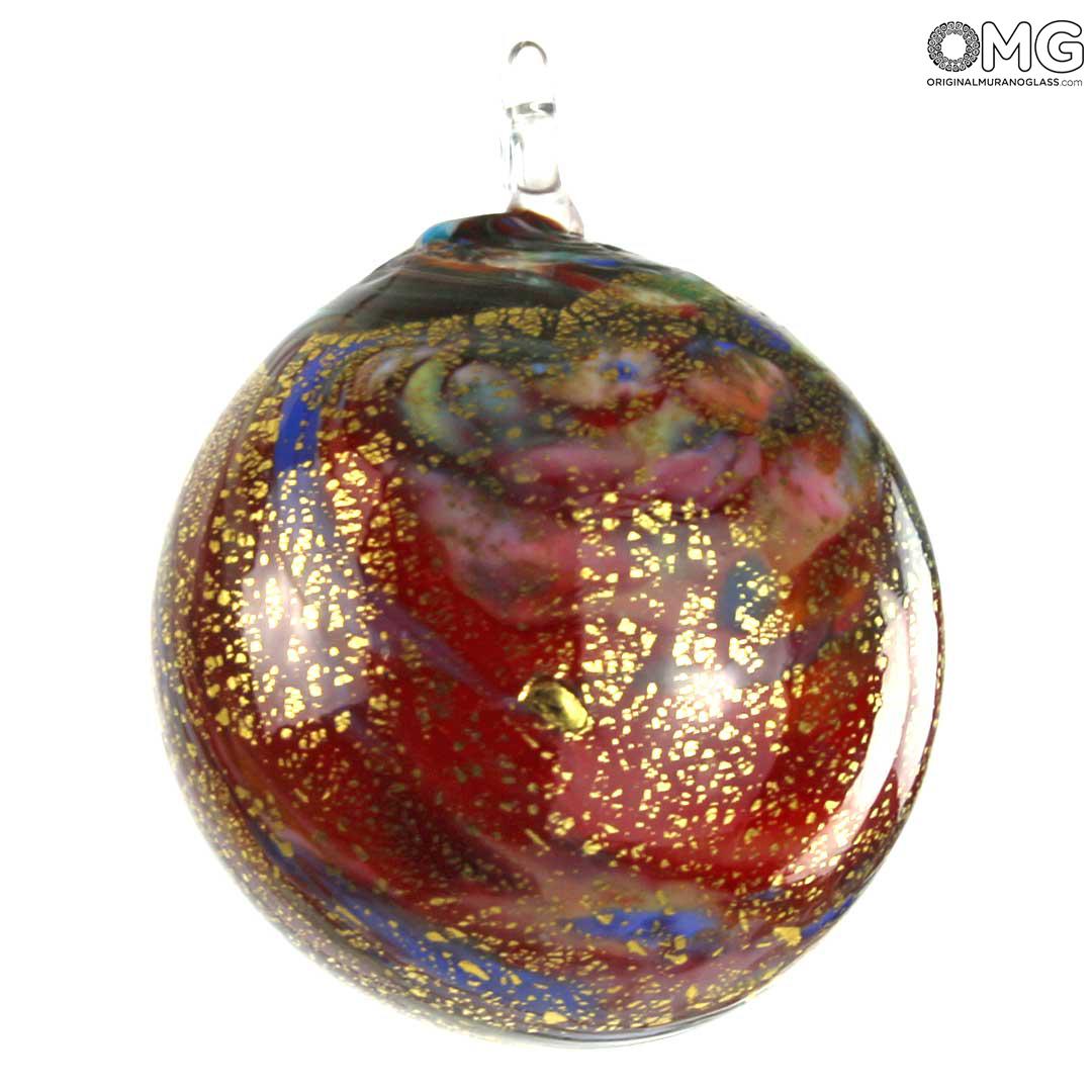 Palline di Natale da appendere all'albero o da utilizzare per addobbare le vostre case in stile natalizio o festoso con un oggetto in vetro soffiato di Murano. Realizzate con foglia oro 24 carati. Le palle sono di diversi colori e hanno un piccolo occhiello sempre in vetro per appenderle.