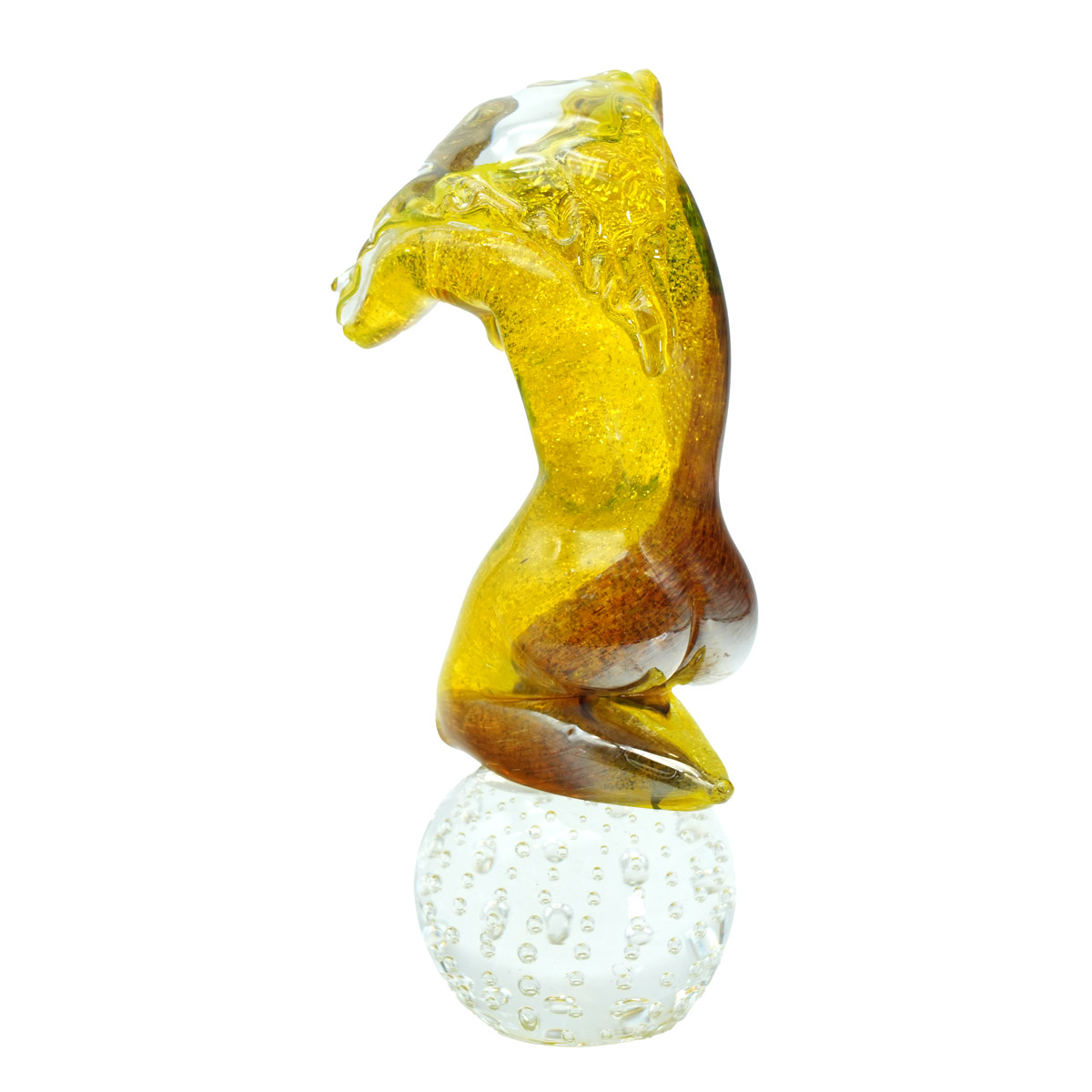 Scultura di una ragazza, fatta a mano con tecnica della modellazione a caldo. I colori brillanti e la foglia argento sommersa con la base cristallo la rendono perfetta come oggetto d'arredo. Ottima anche come regalo per un matrimonio.