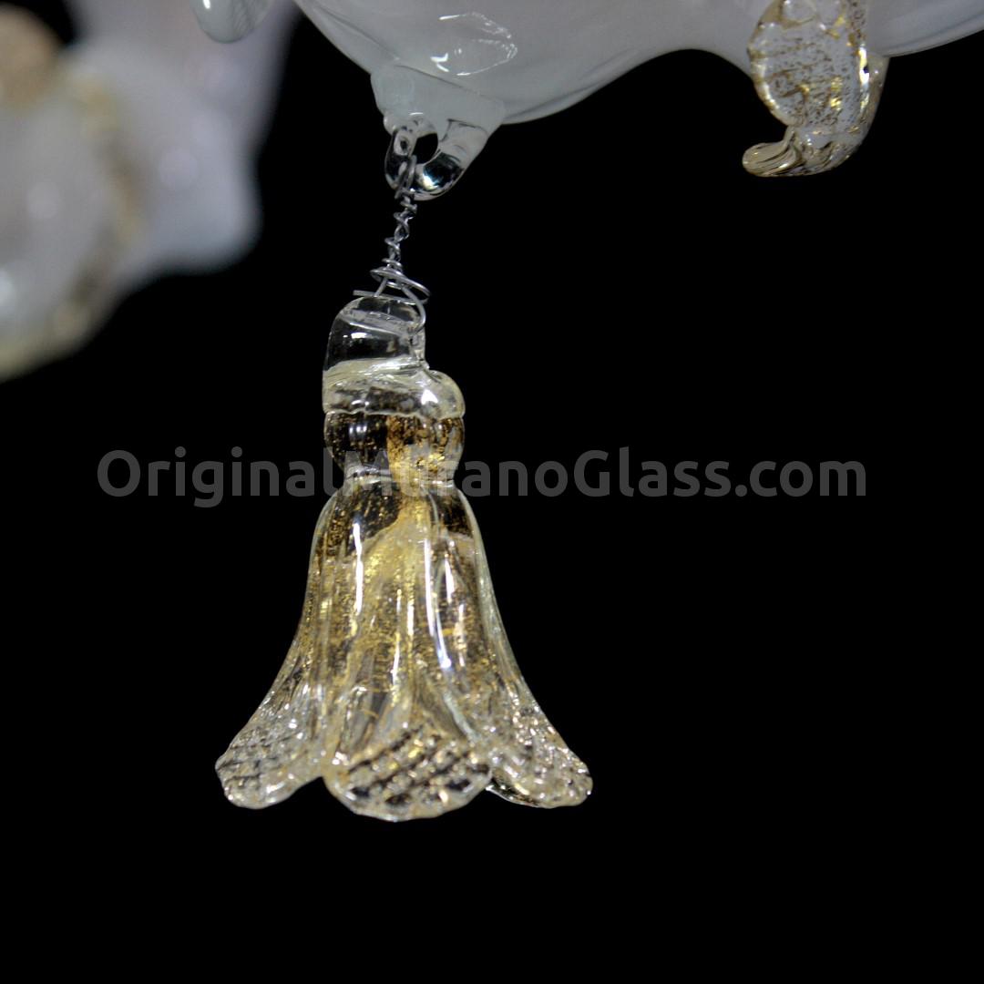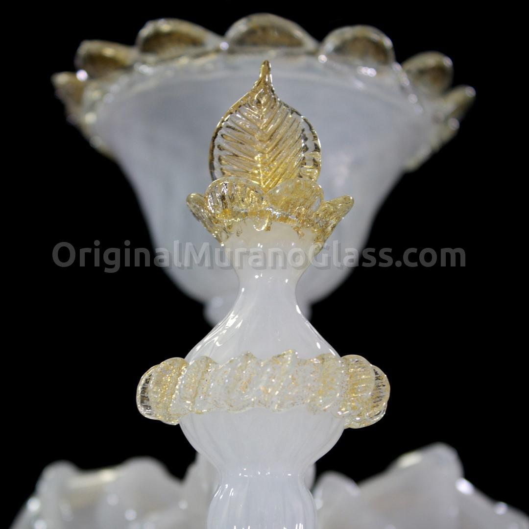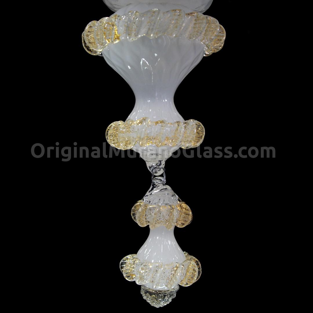 Lampadario Rezzonico 6 luci in vetro artistico veneziano color bianco puro con finiture e dettagli in oro.
