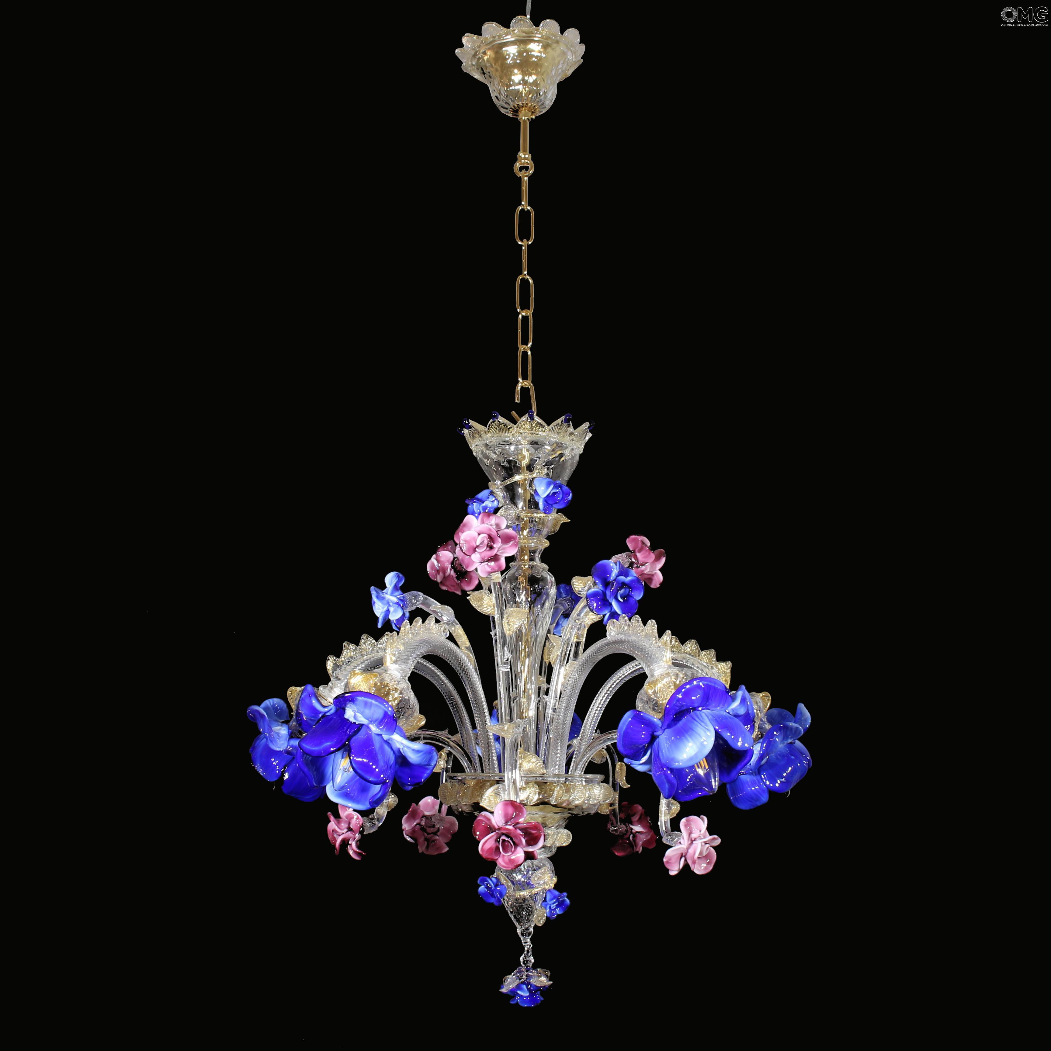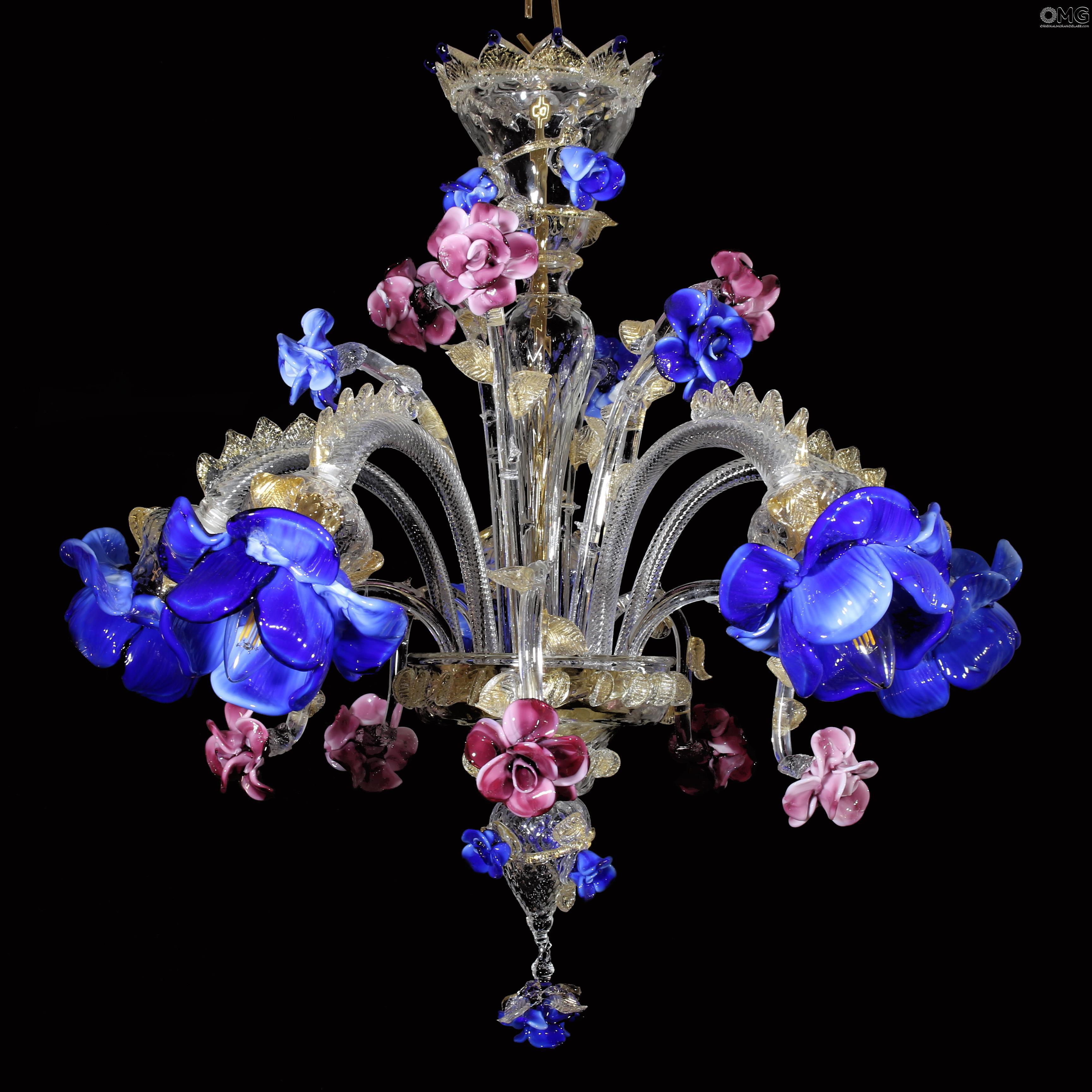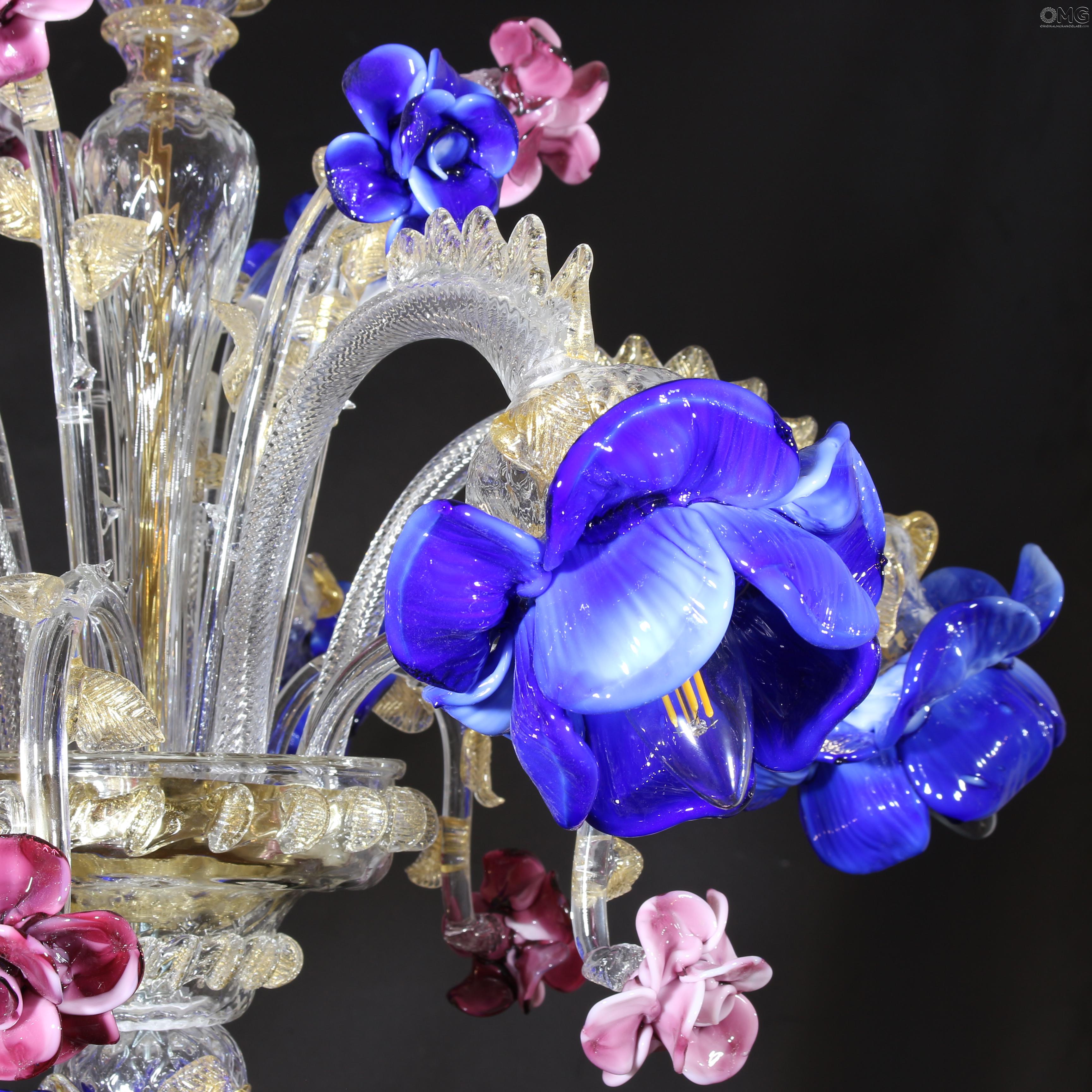 Lampadario fatto a mano originale secondo l'antica tradizione del vetro di Murano, realizzato artigianalmente in vetro soffiato. L'opera è un lampdario veneziano floreale esclusivo, questo lampadario di Murano arricchisce ogni ambiente con eleganza, sia per ambienti classici che moderni.
