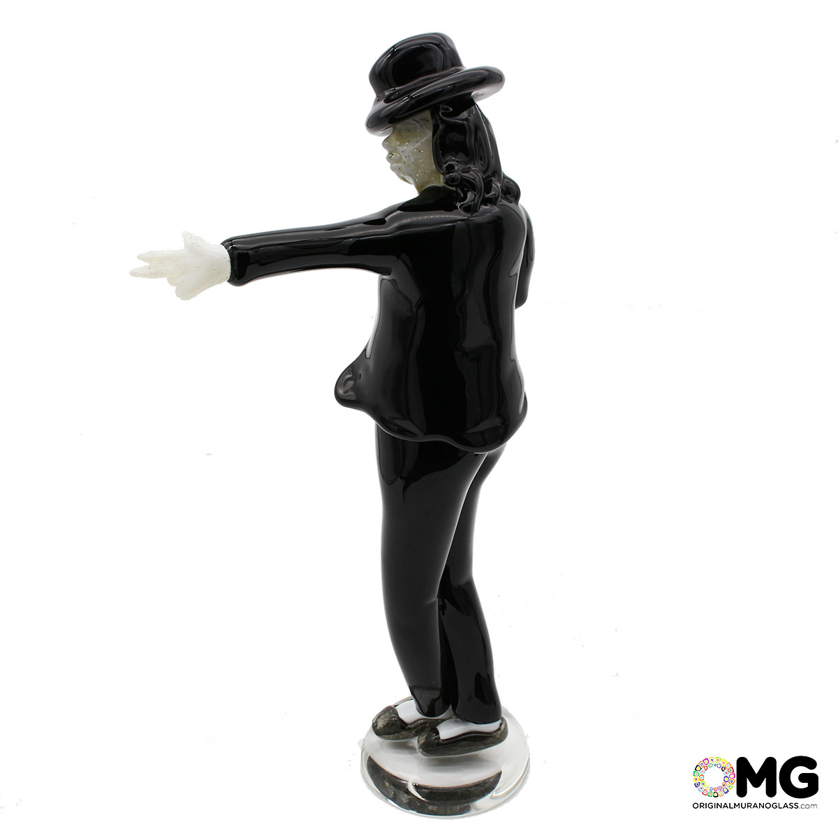 Scultura tributo a Michael Jackson in vetro di Murano originale, tributo a smooth criminal. La figurina è realizzata a mano libera con la tecnica della modellazione a caldo del vetro. Opera per appassionati del famoso artista MJ. Firmata dal maestro e con certificato di originalità, oggetto unico realizzato su commissione.
