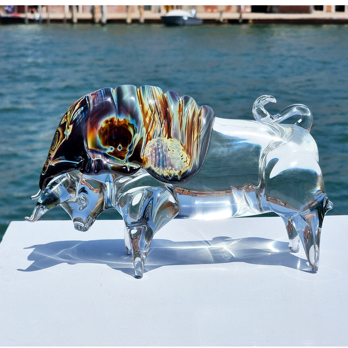 Opera d'arte esclusiva e unica fatta a mano in vetro trasparente e calcedonio, realizzato a mano libera, a puntello e in vetro massiccio.