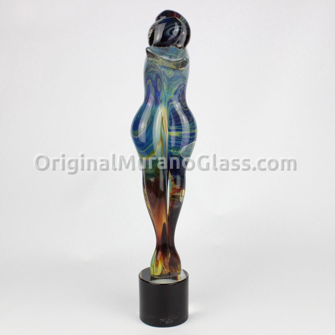 Questa scultura è realizzata in vetro calcedonio, uno dei colori più pregiati della lavorazione di Murano. Proprio grazie alla particolarità di questo colore, realizzato con un miscuglio di ossidi, argento e smalti, il pezzo cambia tonalità se colpito da luce naturale.
