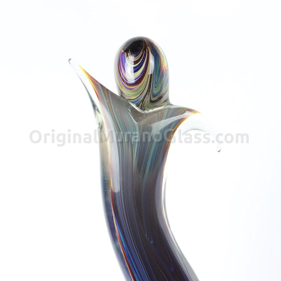 Opera d'arte esclusiva e unica di danzatori, fatta a mano in vetro trasparente e calcedonio, un particolare vetro ottenuto grazie all'aggiunta di sali d'argento ed ossidi di minerali che congiuntamente all'abilità del Maestro vetraio contribuiscono a creare particolari effetti cromatici. Opera realizzata a mano libera, a puntello e in vetro massiccio.