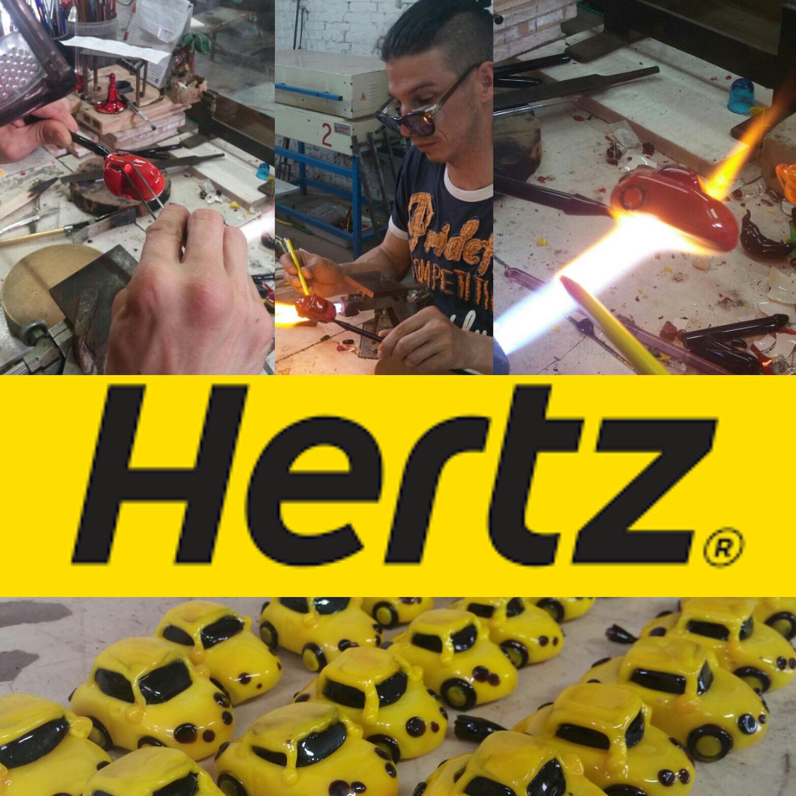Original Murano Glass per Hertz Italia ha sviluppato dei regali aziendali personalizzati in vetro di Murano per un evento che si è tenuto a Venezia. La scelta dettata dalle esigenze del cliente è stata di creare delle piccole automobiline in vetro giallo e nero che ricordassero la fiat 500 e che fossero inerenti al logo e ai servizi di Hertz.