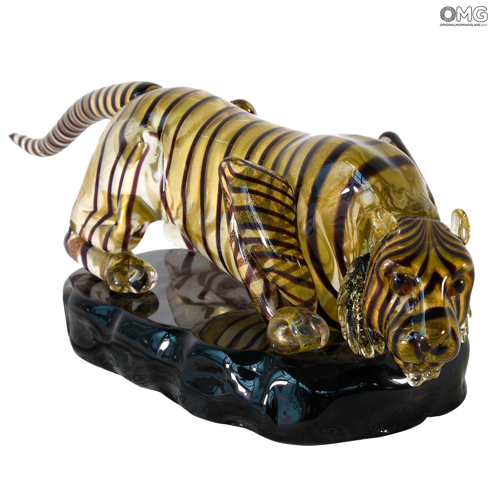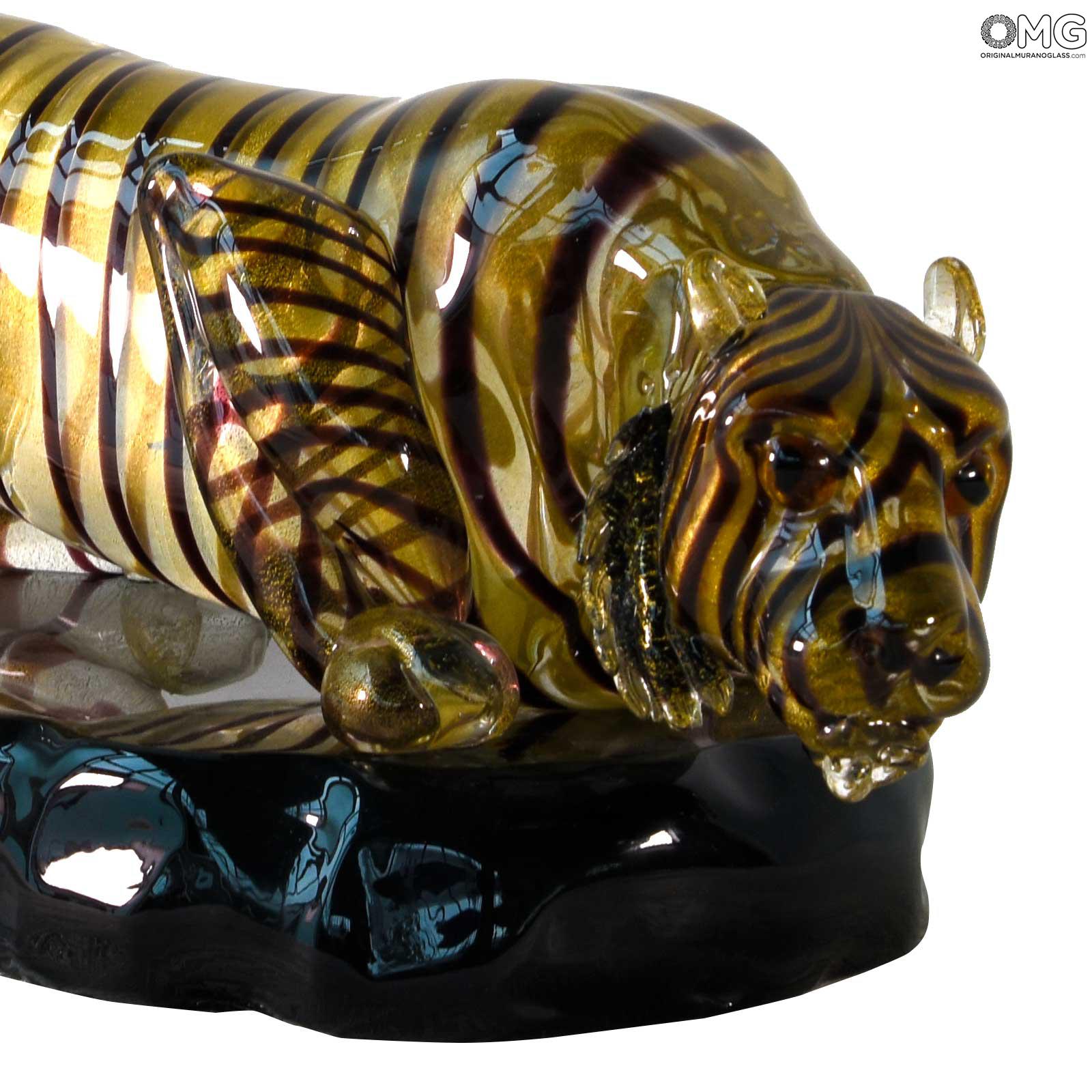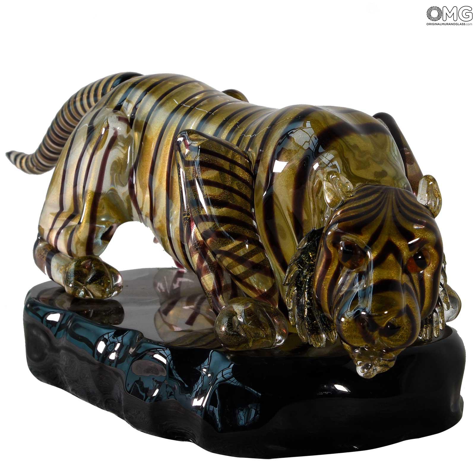 Tigre Malesiana - Scultura - Vetro di Murano Originale
