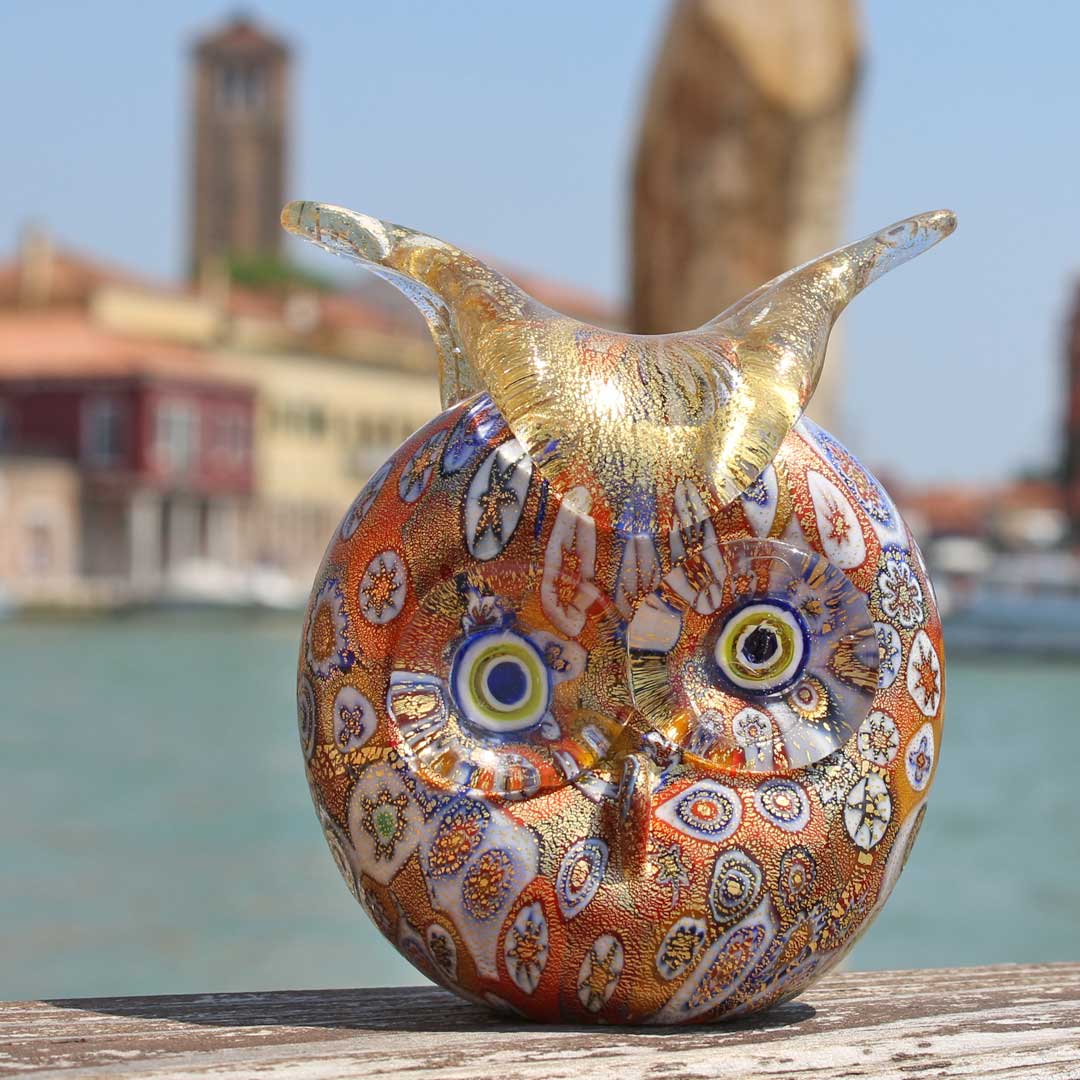 Gufo Civetta figurina in murrine e oro - Animali - Vetro di Murano Originale OMG