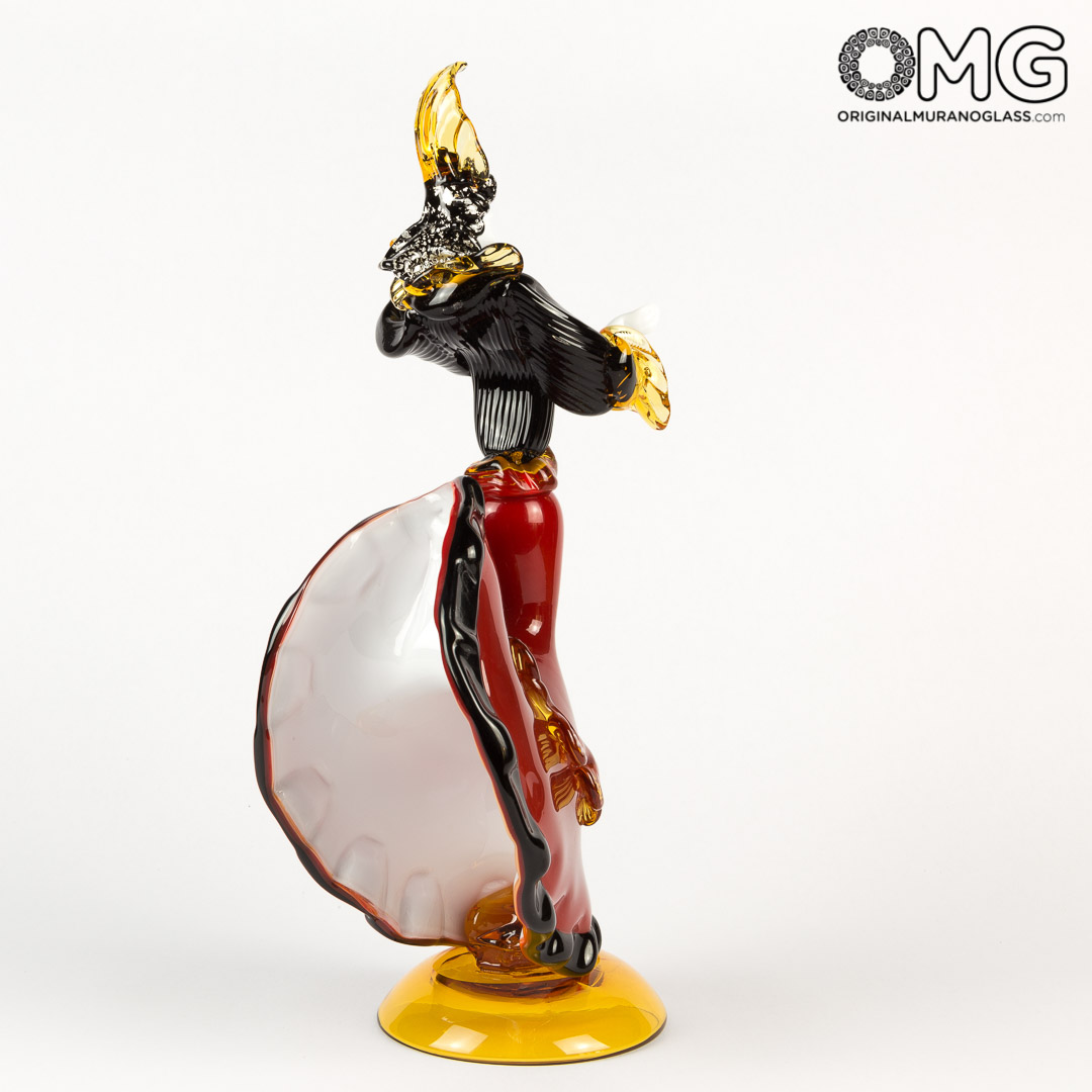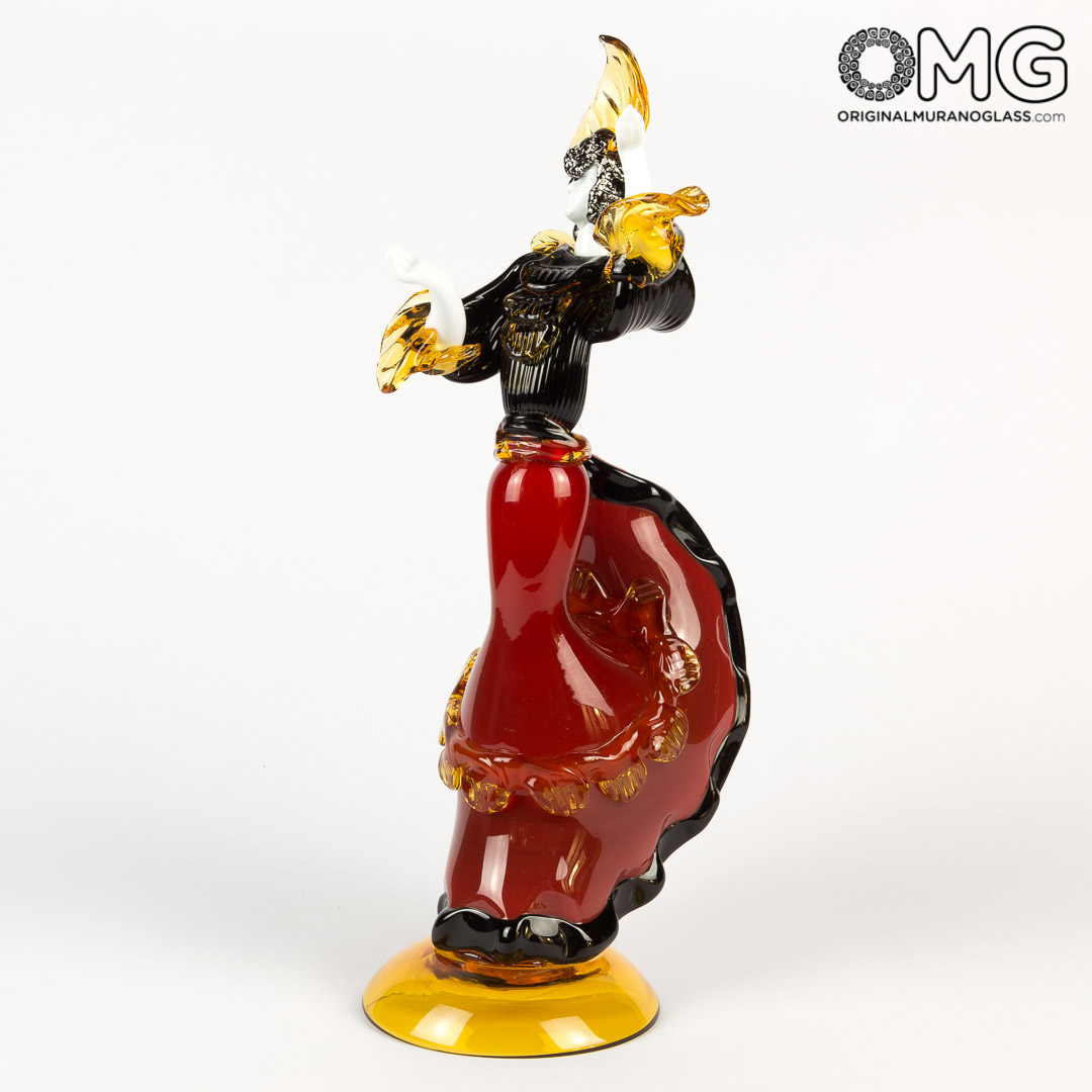 Bellissima coppia di danzatori. Dama e cavaliere in vetro rosso con particolari in nero. Lavorate interamente a mano con la tecnica della modellazione a caldo, un tributo all'arte gitana da parte dei nostri maestri vetrai. Molto curate nei particolare e ricche di stile gitano. Oltre ad essere una riproduzione incredibilmente fedele ai modelli reali, questa coppia riccha di fascino, donerà un tocco di raffinatezza al tuo salotto.