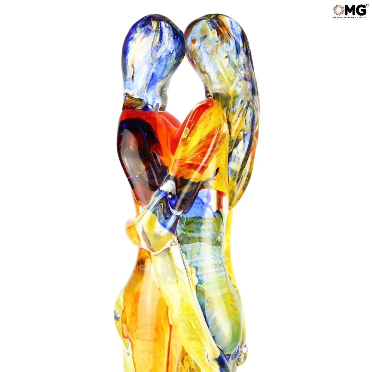 Scultura di amanti - abbraccio blu arancio rosso giallo - Vetro di Murano - Misura grande