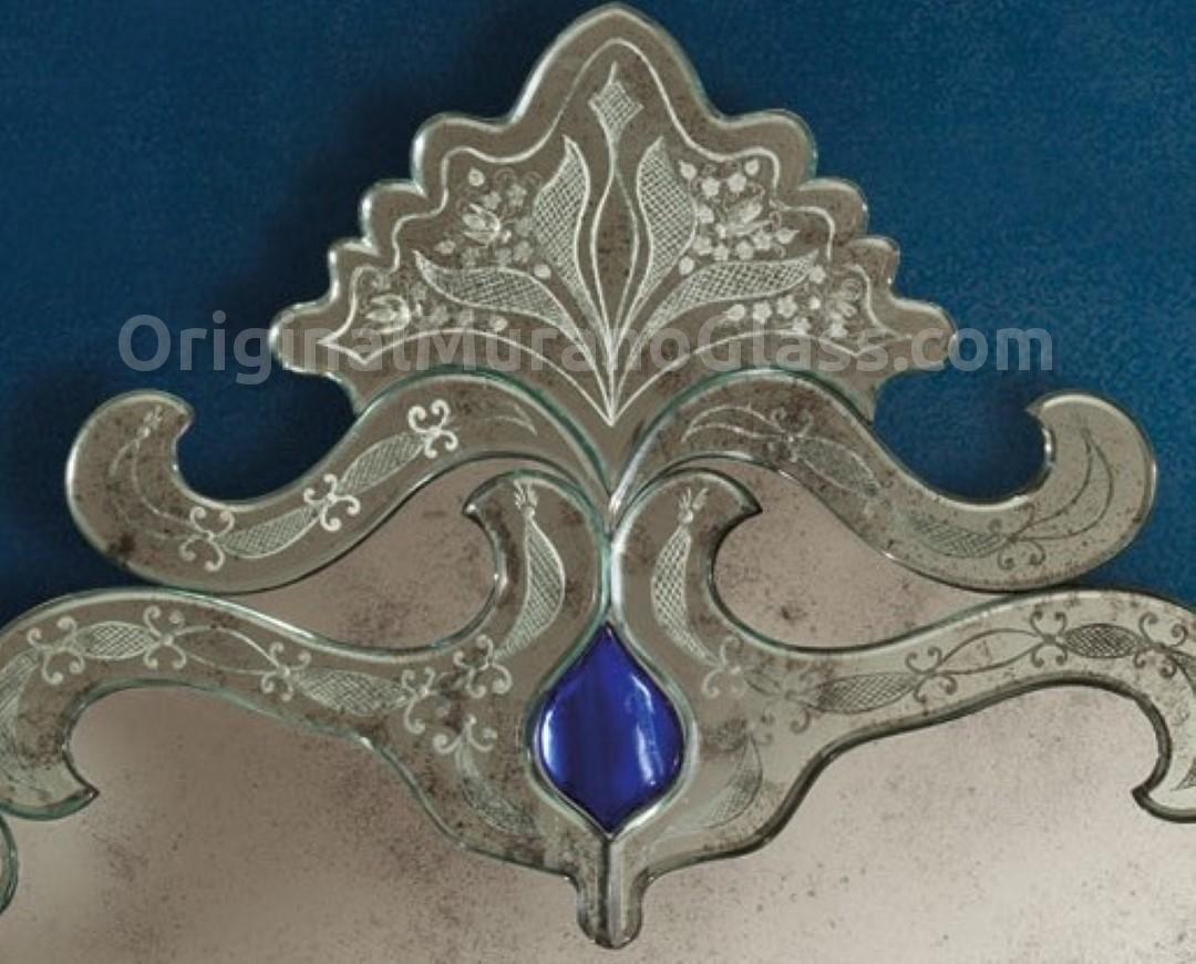 Lo specchio è composto da una decorazione floreale con 10 perle blu.