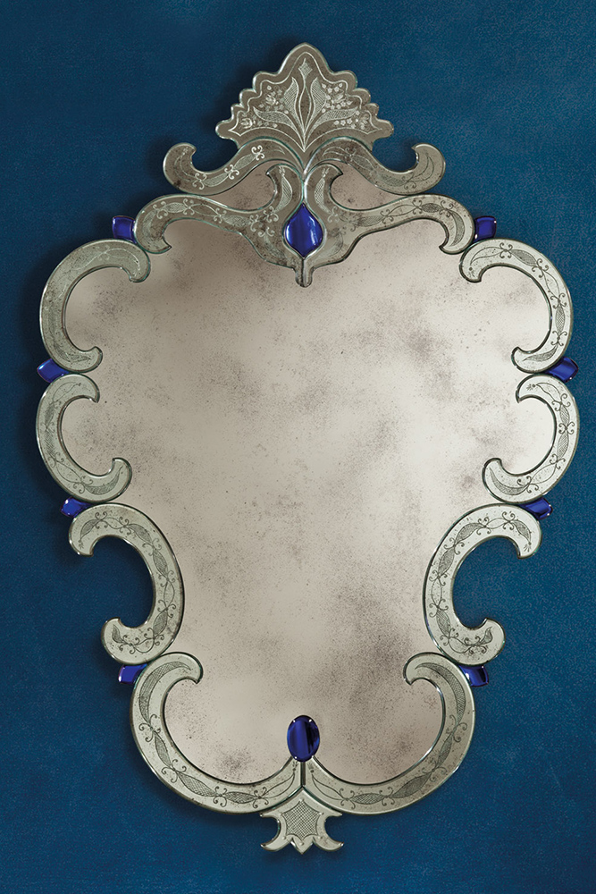 L'opera d'arte è disegnata e realizzata con cura nei dettagli dai nostri artigiani specchieri, dai maestri vetrai per gli abbellimenti in vetro di Murano, e falegnami.