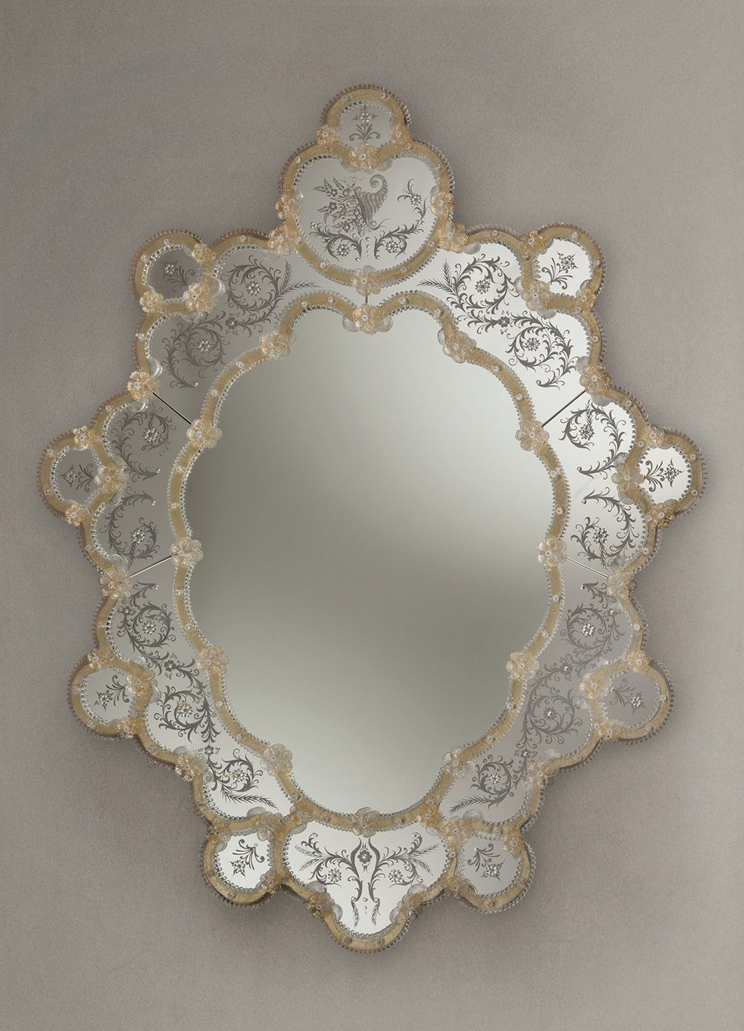 Lo specchio non è fatto industrialmente, ma secondo l'antica tradizione veneziana degli specchieri.