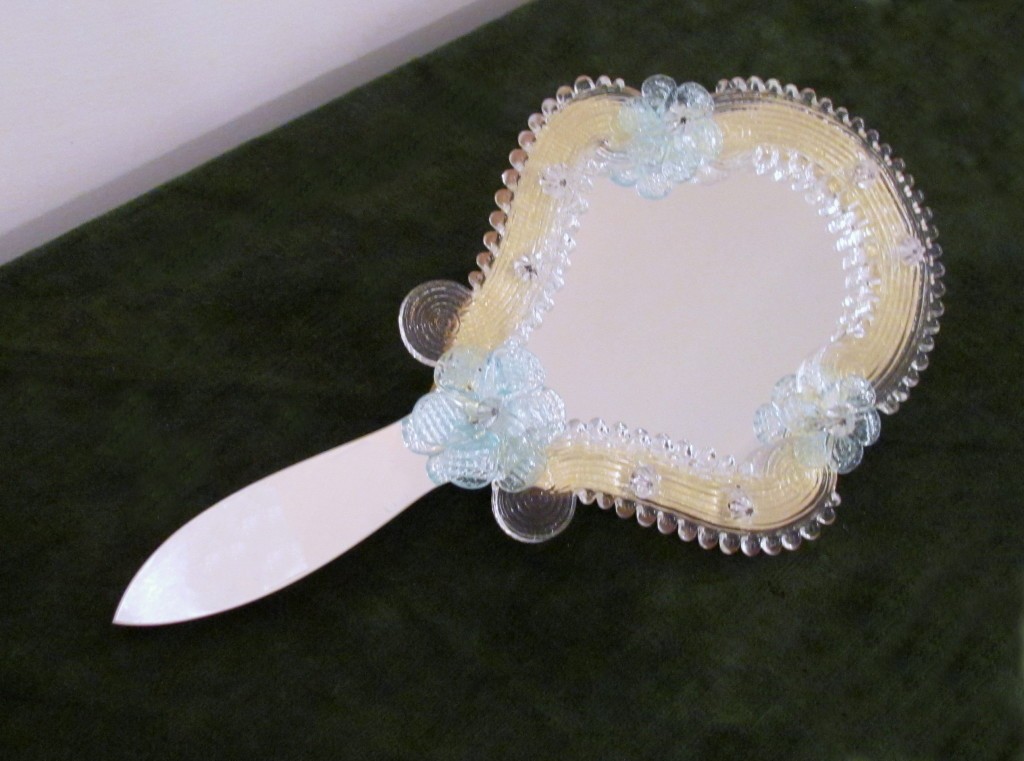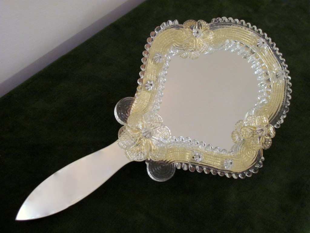 Specchio a mano Regina Veneziano da tavolo in vetro di Murano