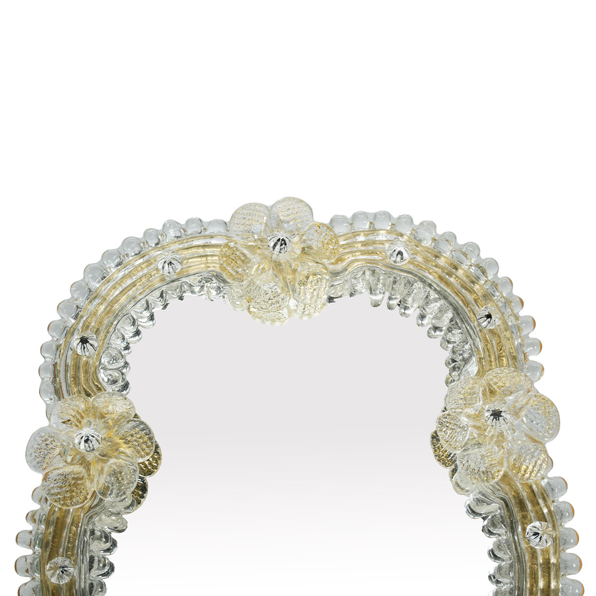 L'opera d'arte è disegnata e realizzata con cura nei dettagli dai nostri artigiani specchieri, dai maestri vetrai per gli abbellimenti in vetro di Murano, e falegnami.