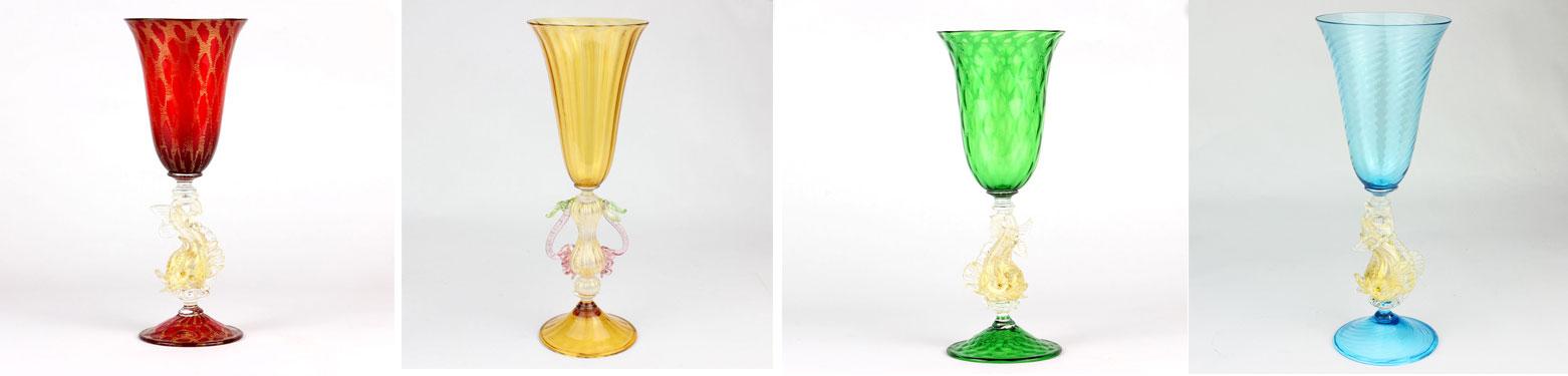 Stiamo parlando del tipetto veneziano che, a ben vedere, è qualcosa di più di un semplice calice. Con una fortuna plurisecolare, e un processo produttivo immutato nelle sue fasi essenziali nonostante le migliorie della moderna tecnologia, è un frammento di storia che può conferire ad una tavola imbandita quel valore aggiunto che solo l’arte riesce a infondere.