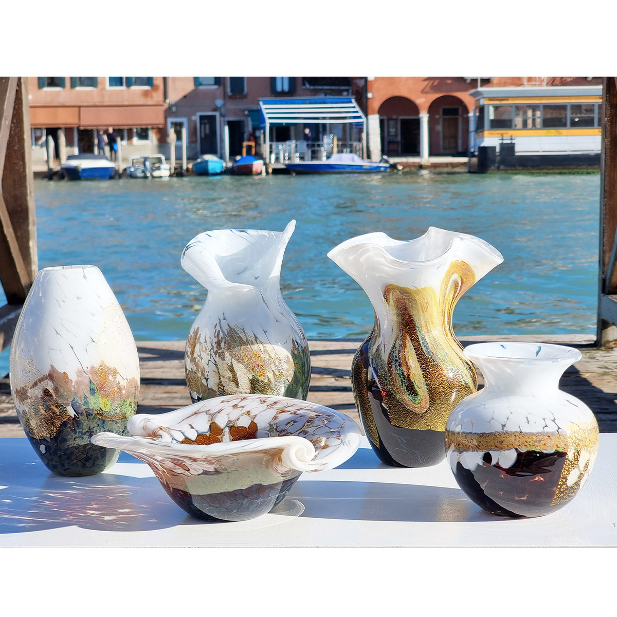 adriatico - Vaso Soffiato nero e oro - Original Murano Glass