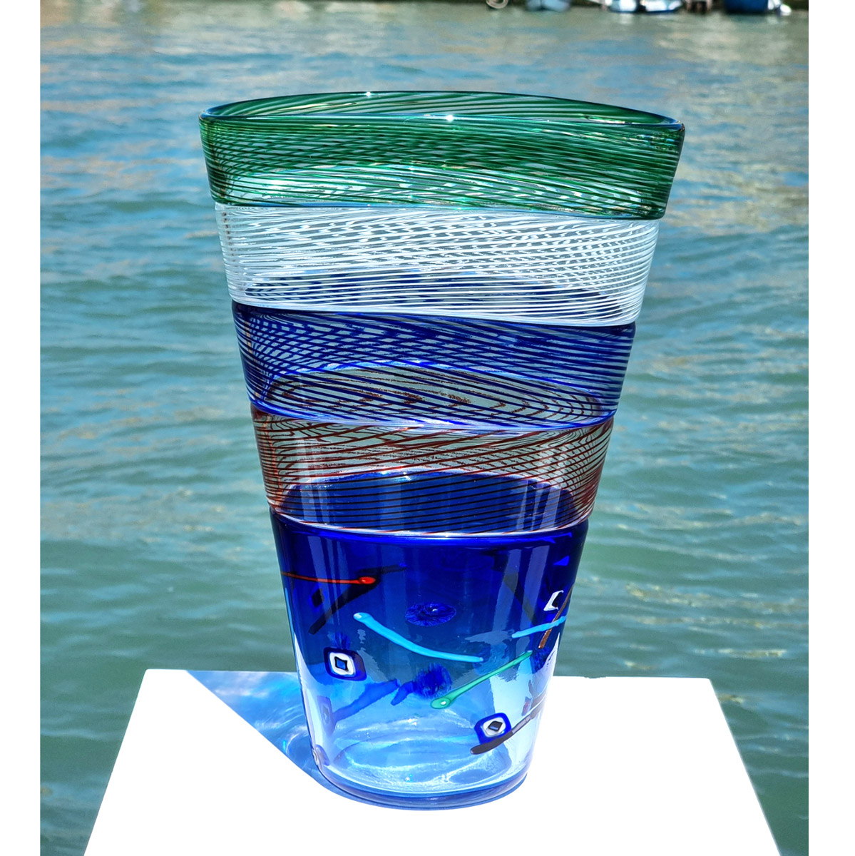 Il vaso è soffiato e realizzato interamente a mano dal noto maestro vetraio. Si tratta di un pezzo unico, non riproducibile. Un'opera d'arte unica nel suo genere.