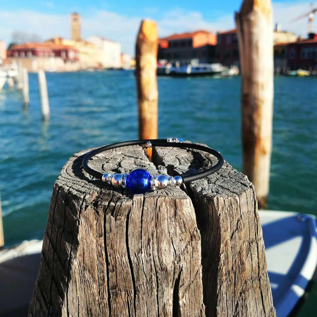 Pulsera hecha a mano con cristal de Murano, mediante la técnica del soplado de vidrio.