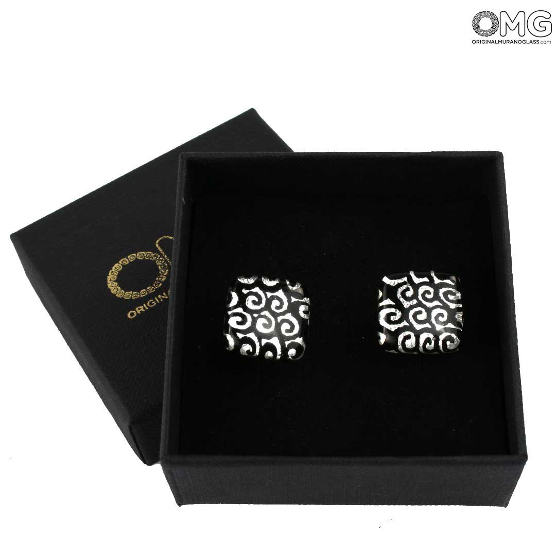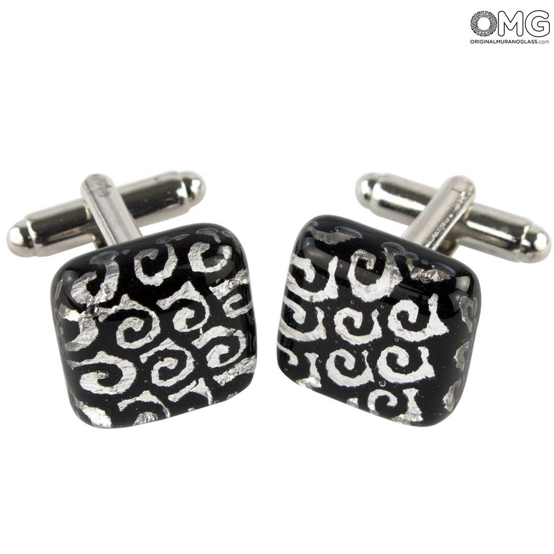 Elegantes gemelos hechos a mano con la técnica de la fusión de vidrio, elaborados con gran atención al detalle y adornados con pan de plata.