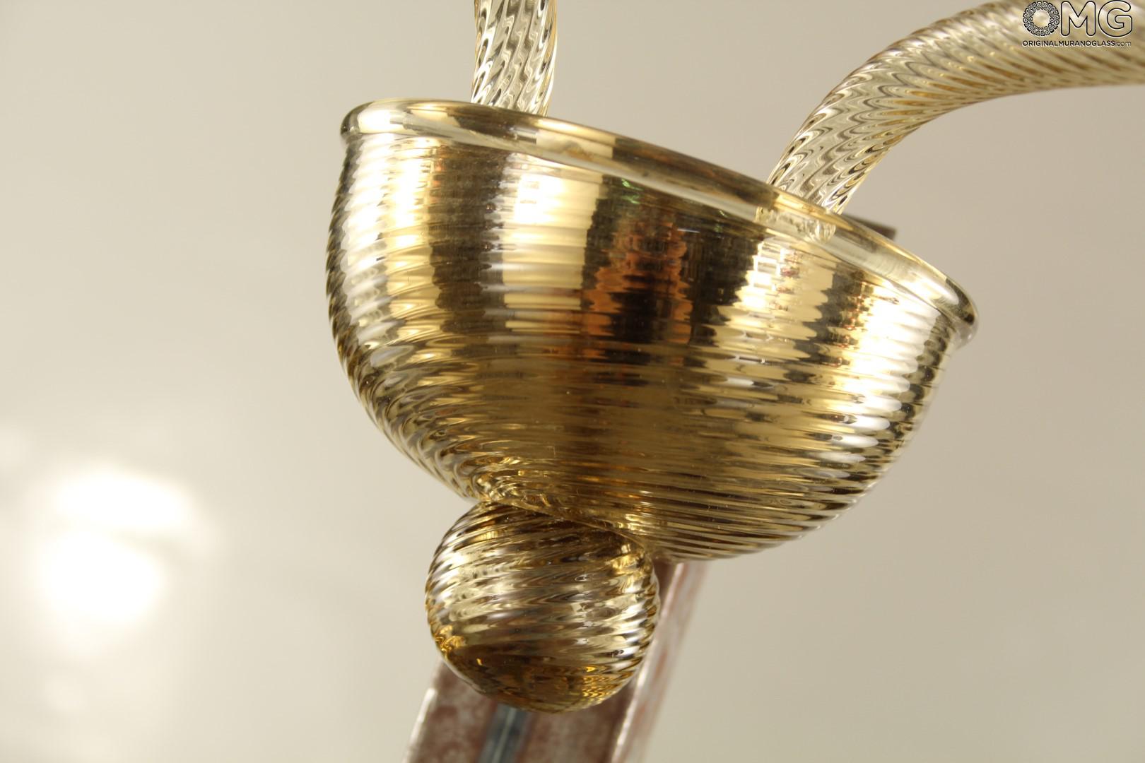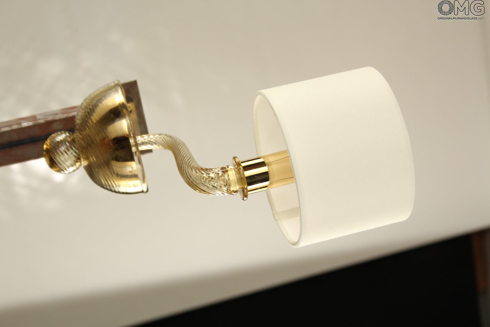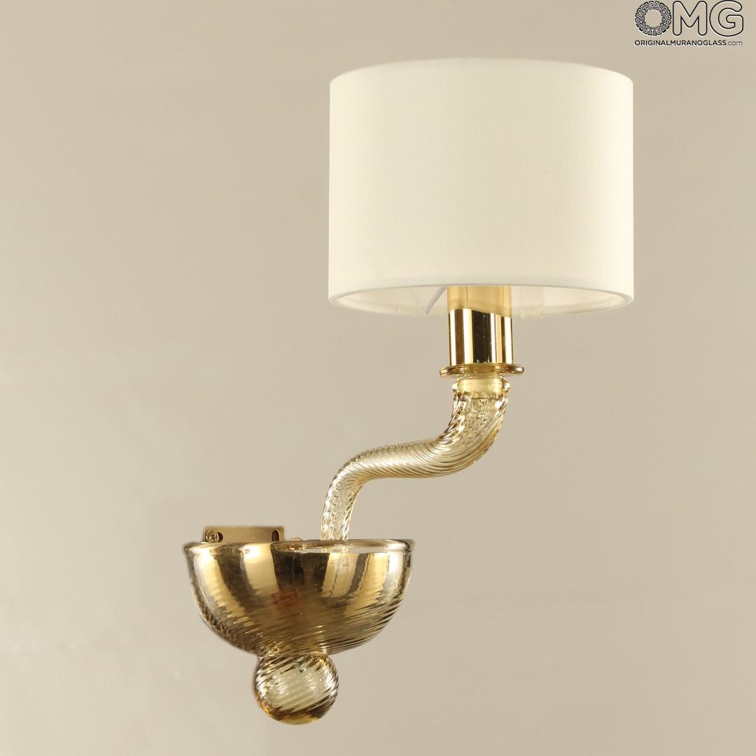 Luxury Wall lamp sconce in amber glass color striped-twisted with smooth lampshades and gold finitures.