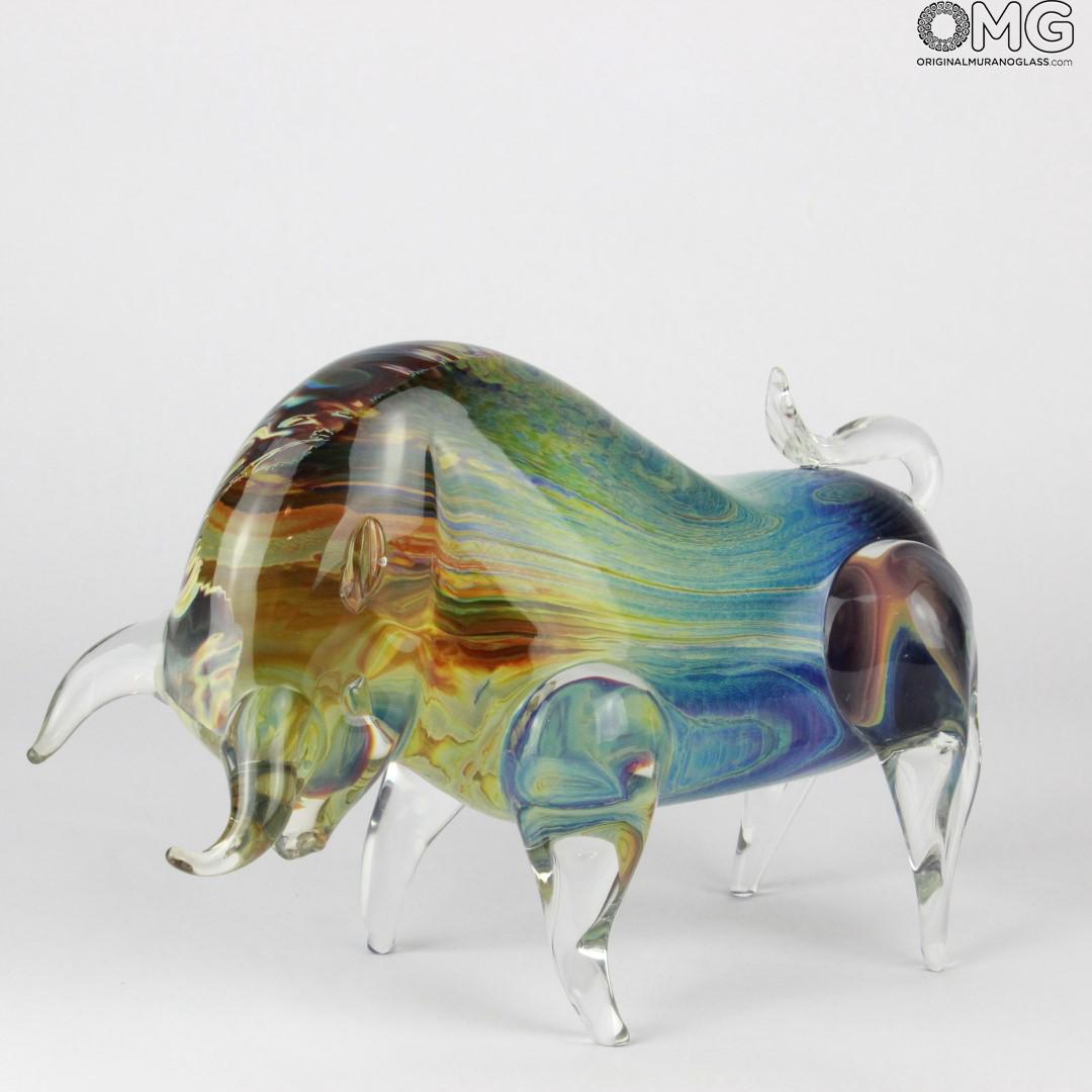 Bull - Sculpture in chalcedony - Original Murano glass OMG