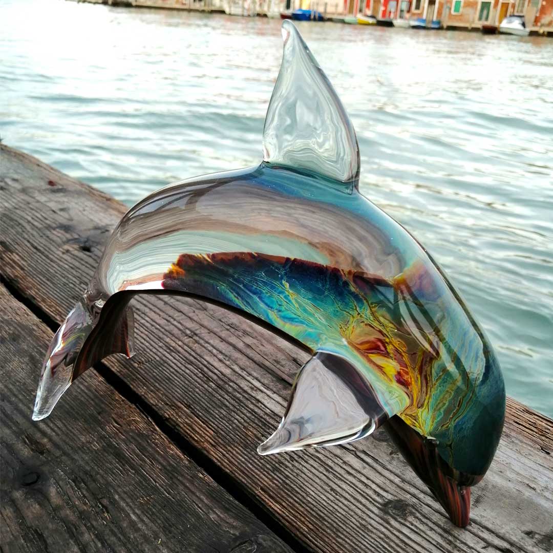 Delfín - Escultura de calcedonia - Vidrio de Murano original Omg