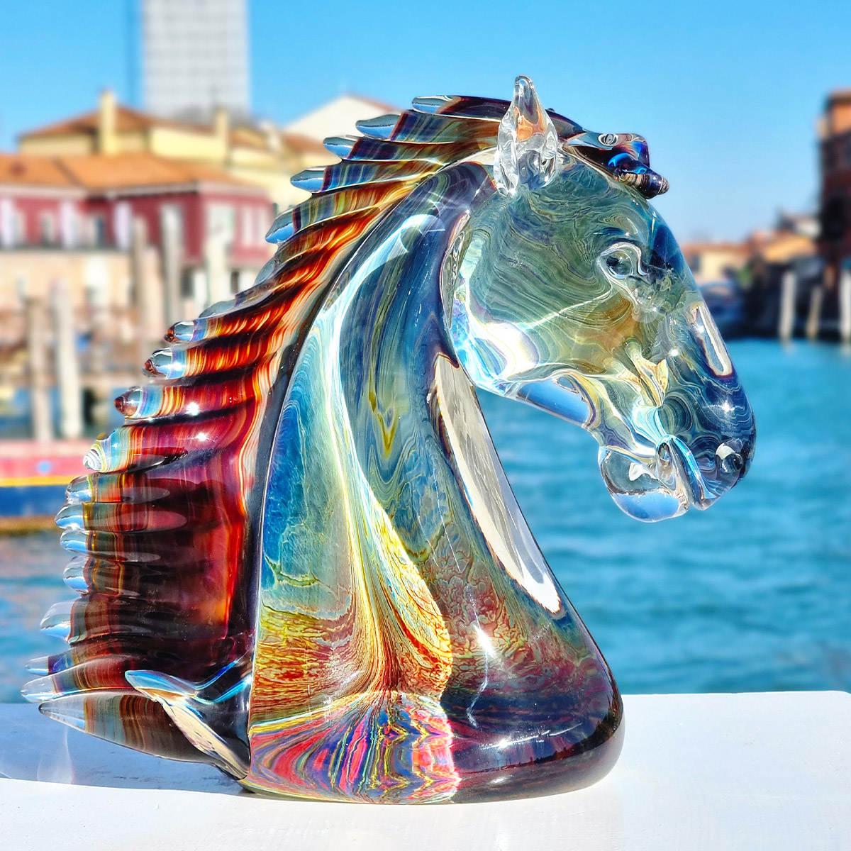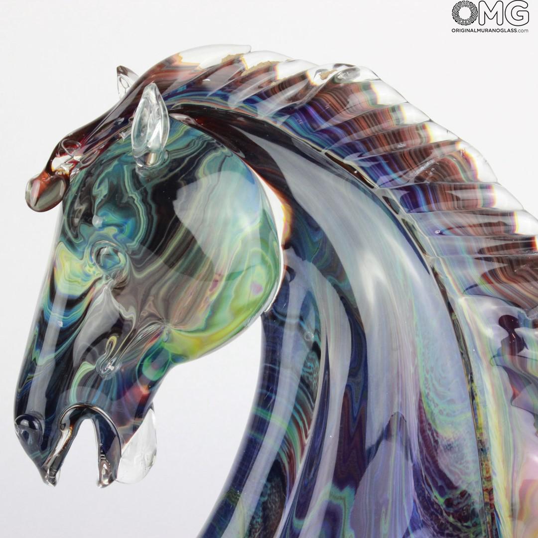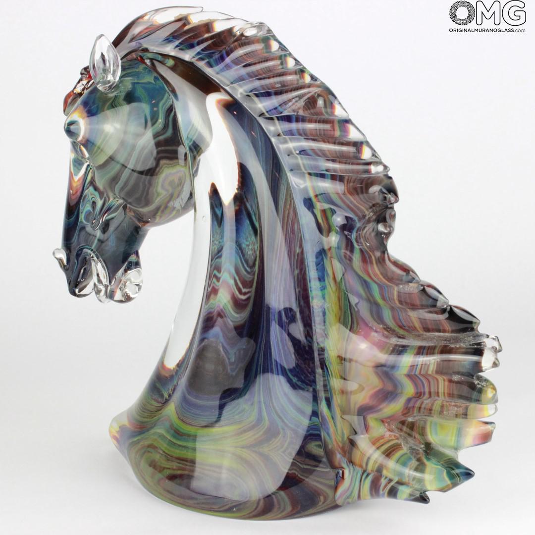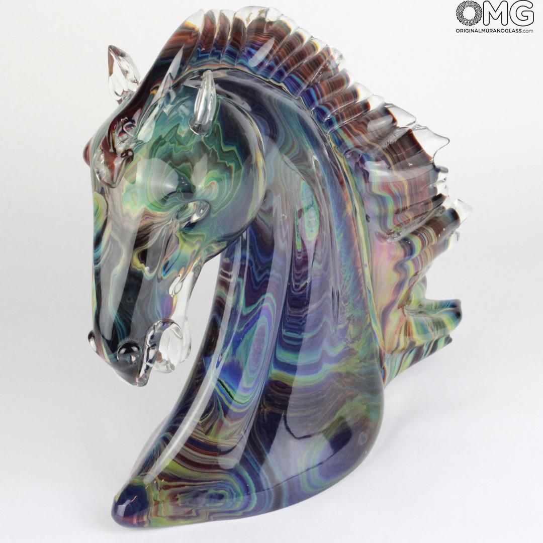 Horse head - Sculpture in chalcedony - Original Murano glass Omg