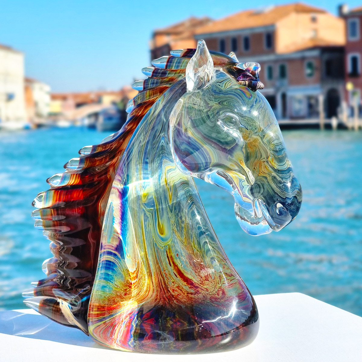 Authentic Murano glass horse sculpture in chalcedony