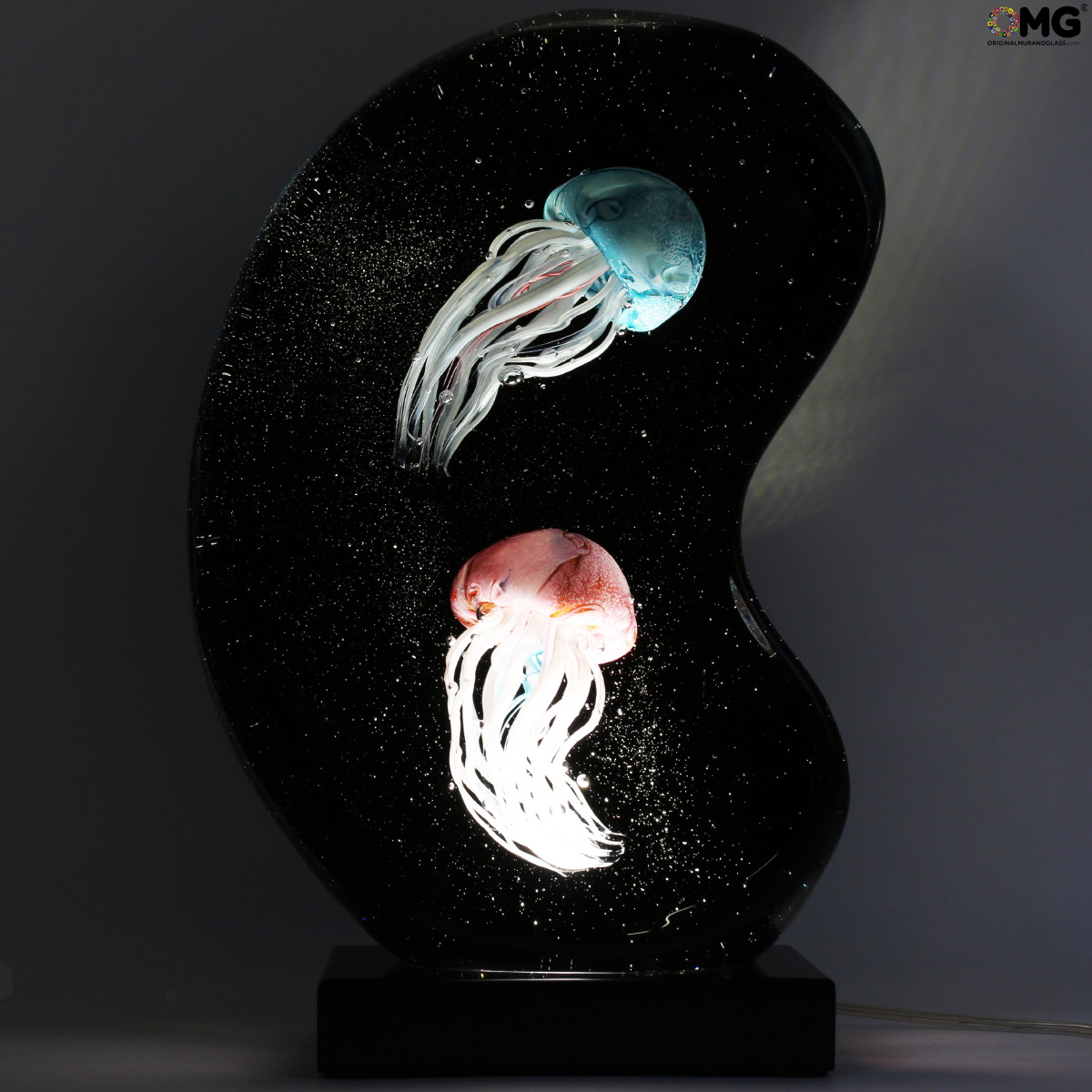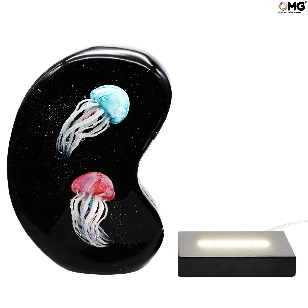 Acuario de medusas exóticas —con lámpara LED— —Vidrio de Murano original— Omg