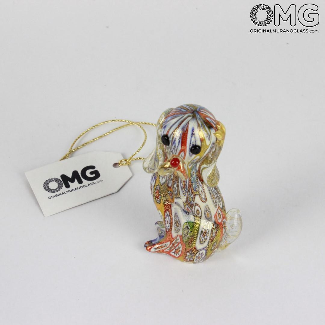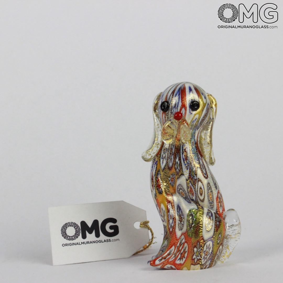 Figurita de perro en murrina millelfiori dorada - Animales - Vidrio de Murano original Omg