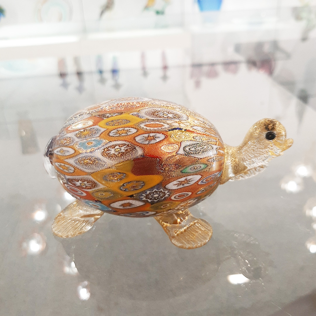 Figurita de tortuga de cristal de Murano en oro de 24 quilates y murrine Millefiori
