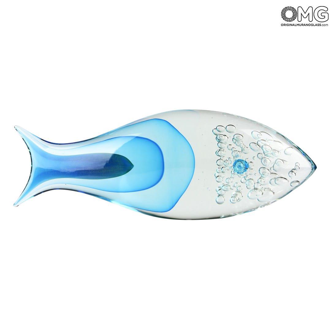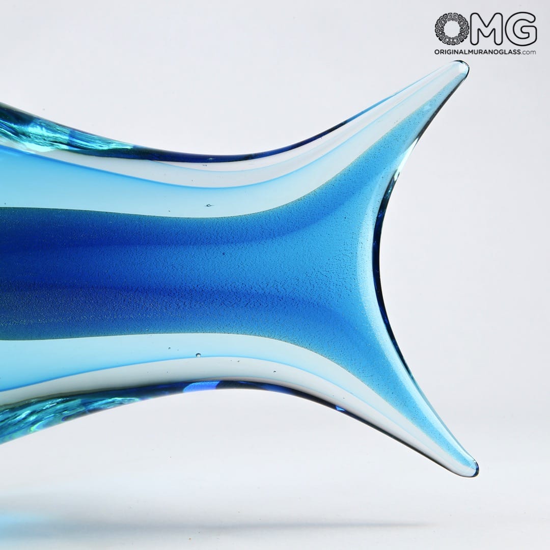 Fish Abstract Sculpture - Light Blue - Original Murano Glass