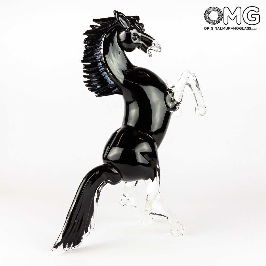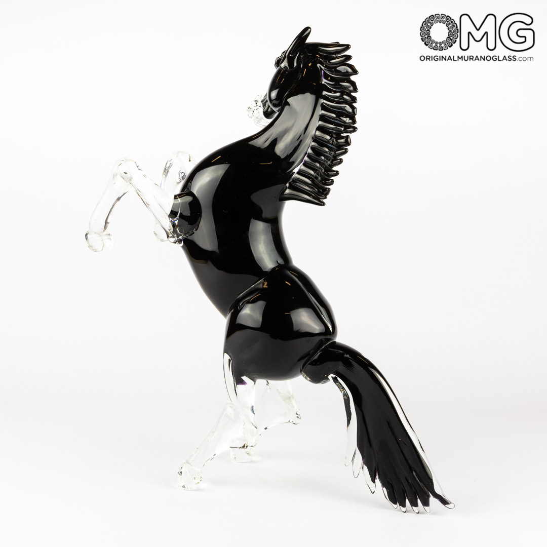 Fantastique and exclusive handmade horse with the technique of glass warm modellation in black.