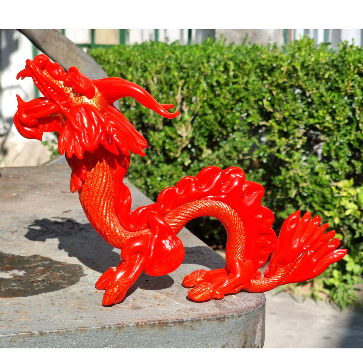Exclusive Murano dragon glass sculpture handmade with the technique of warm glass modellation and embellished with real 24 carats gold leaf.
