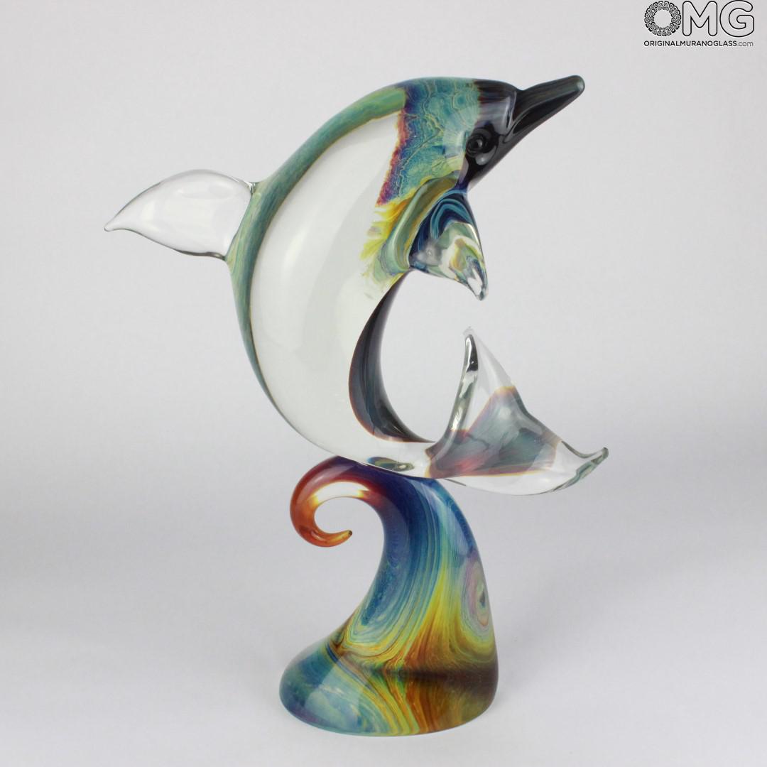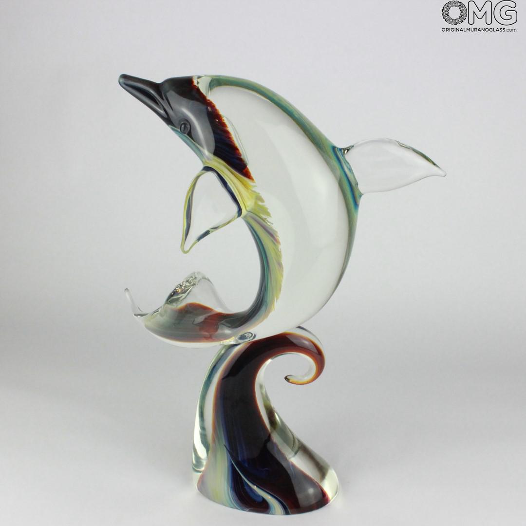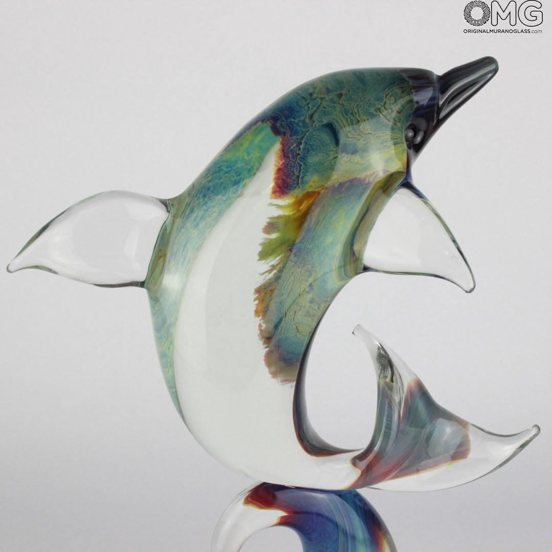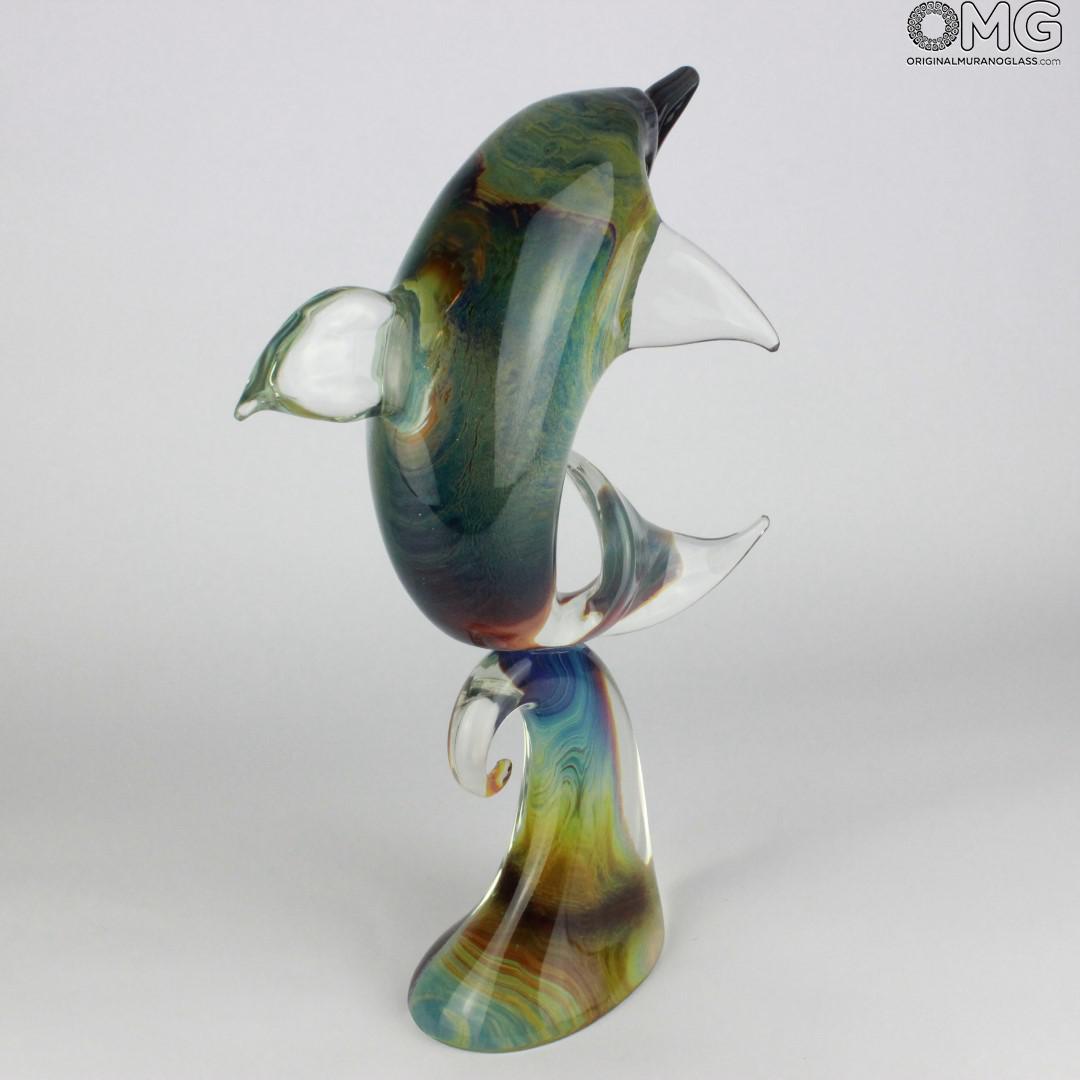 Jumping Dolphin - Sculpture in chalcedony - Original Murano Glass Omg