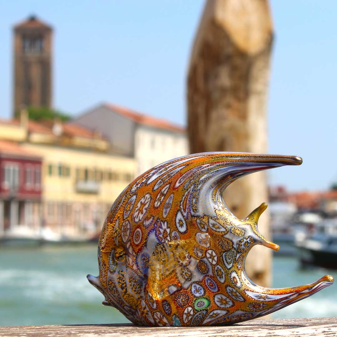 Figurita de pez - Murrine Millelfiori y oro - Vidrio de Murano auténtico