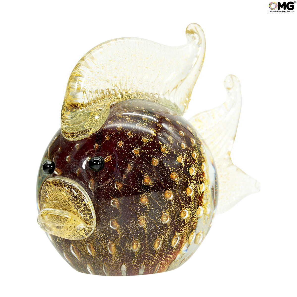 Pez —con oro auténtico—. Cristal de Murano original OMG