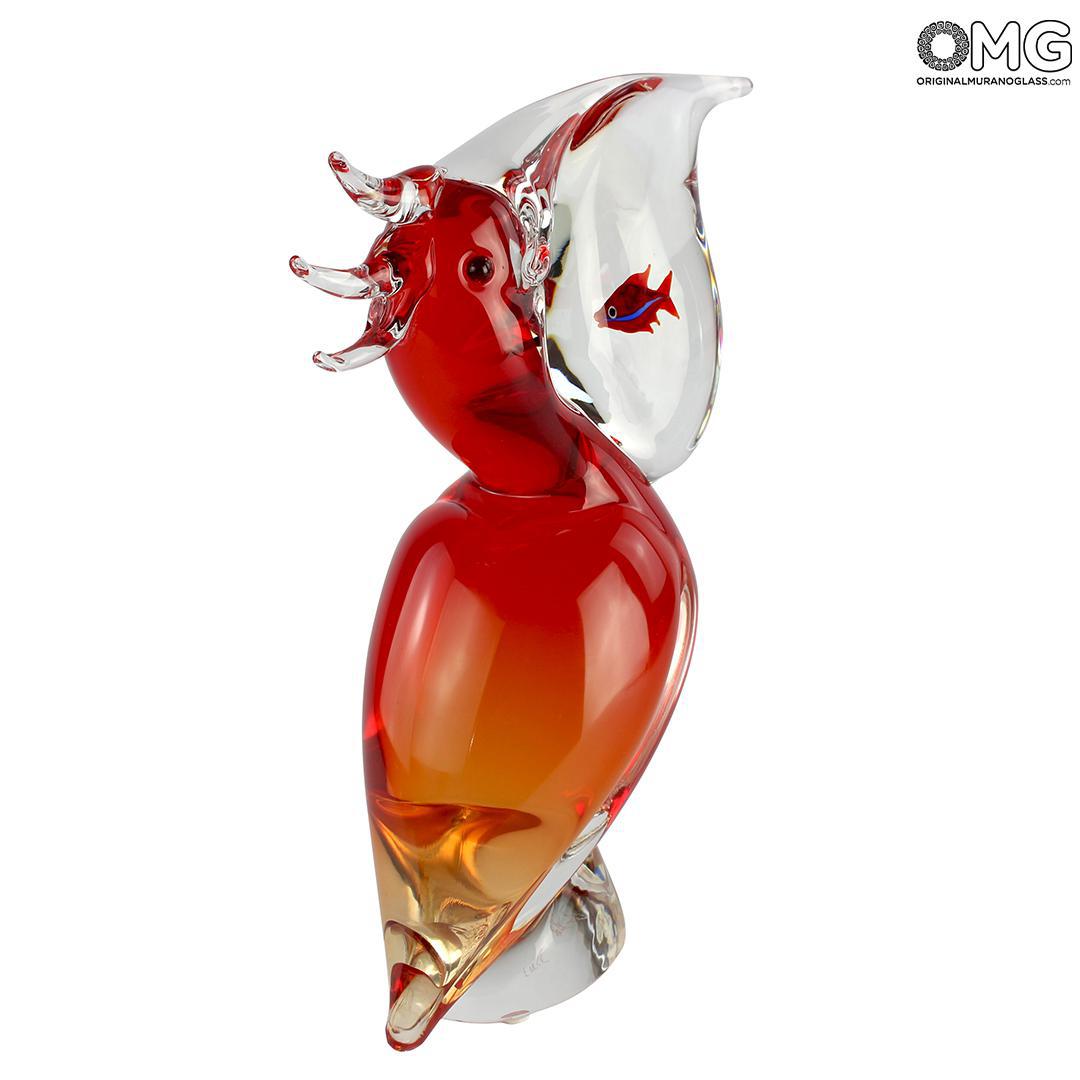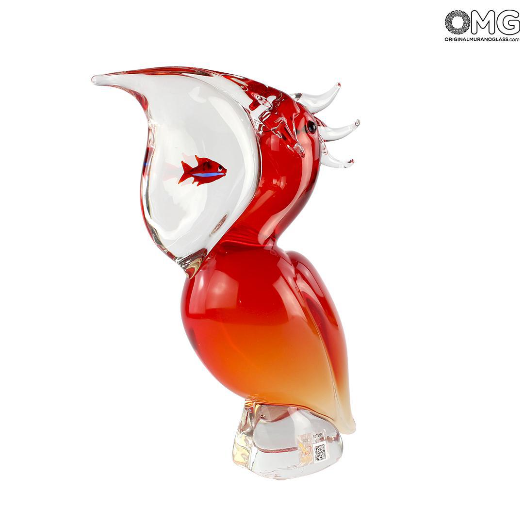 Red Pelican with Fish - Glass Sculpture - Original Murano Glass OMG