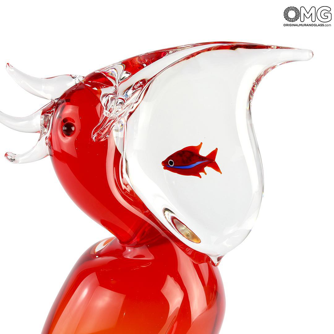 Amazing sculpture of a red pelican eating its fish. Incredible artwork handmade, no mold used, realized in sommerso technique and glass modelling. Even the fish is handmade. This give to the sculpture an incredible aurea and value. A prefect artwork for your living room and an amazing gift idea to surprise.