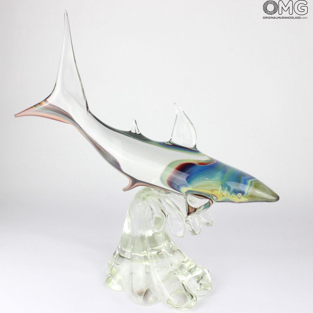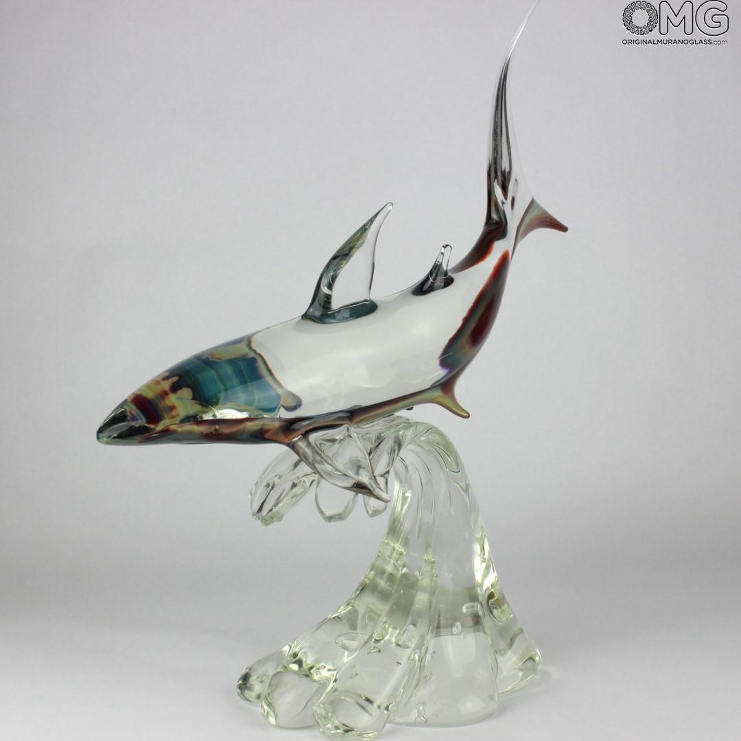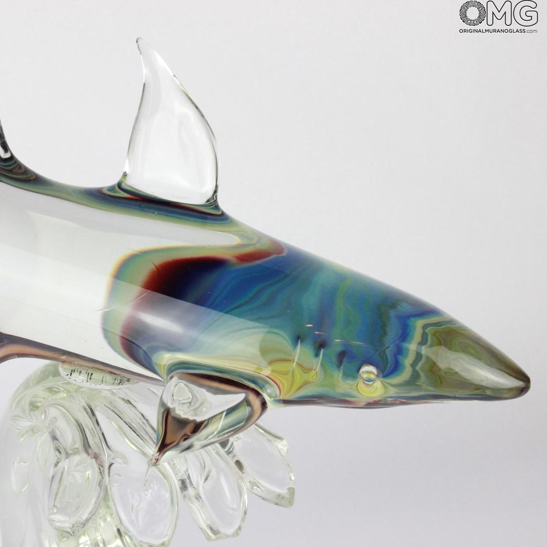 Shark on base - Sculpture in chalcedony - Original Murano glass OMG